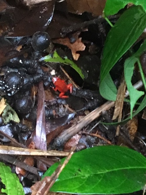 After a rest we did a mud walk where we spotted lots of poison dart frogs (strawberry blue jeans).