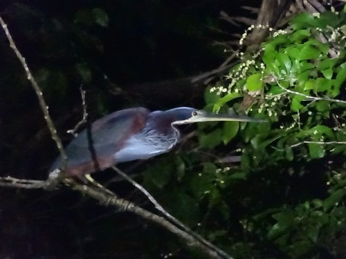 Last night we went on a night boat ride along the canals and while we didn’t spot any sloths or jaguars we saw plenty of birds (the smallest and largest kingfisher in Costa Rica) including a rare heron as well as micro-bats and cayman. Pictures are hard at night so i apologise for the bullfrog and cayman.