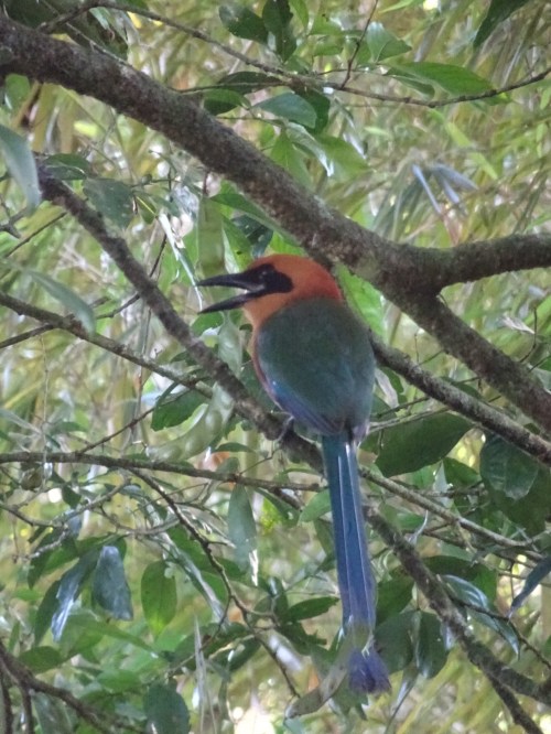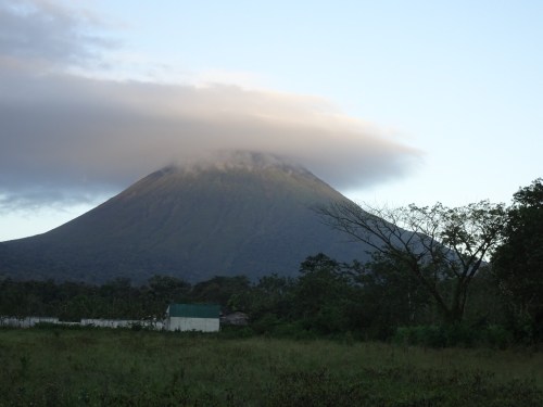 After breakfast we walked around town – I got a picture guide to the animals of Costa Rica and another tank top and we bought shirts for Blake and Malik. Lauren and Elsie are getting necklaces from the turtle conservancy. Just before lunch the volcano cleared enough for us to get a photo of the full thing. Stu also spotted a heron and a bird of the same species we saw yesterday.