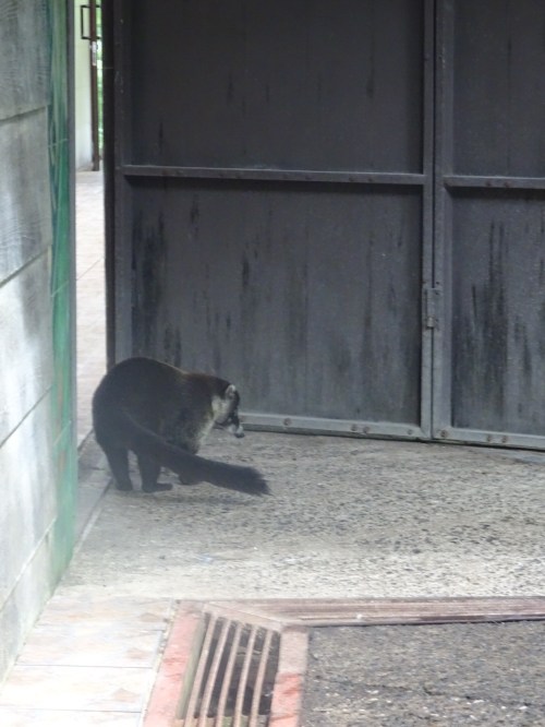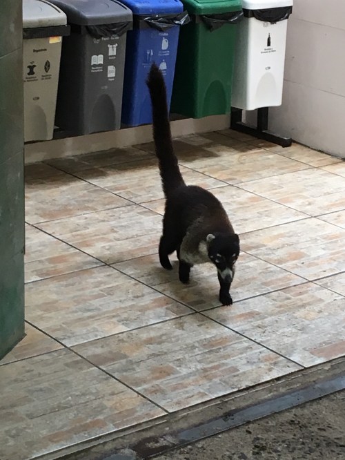 After an uneventful walk we found a white nosed coati foraging in the restaurant.