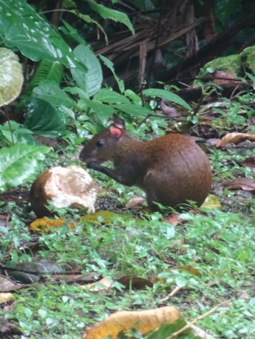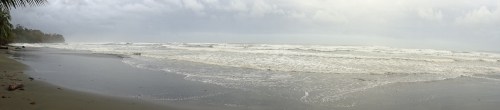 The 150ish km has taken us about 5.5 hours with a lunch break as the road to the Caribbean side is pretty much single lane each way and their are lots of big trucks and crazy drivers. Peter got us all to the Cabinas Nirvana Ecolodge safely. This is a beautiful property just off Playa Negra (a black sand beach) about a km or so north of Cahuita. The whole coast has a very afro-caribbean influence due to the colonial banana trade. The property is beautiful and we have howler monkeys near our room somewhere and have seen 6 toucans in the trees around the grounds. The Caribbean here is still rough and i don’t think you can swim here (apparently a bit further south near the border with Panama there are some great beaches).