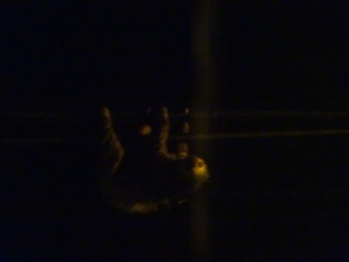 We had a couple of cocktails at a reggae bar and then ate dinner at a restaurant called Sobre Los Altos on the beach which made delicious food but also had a mother and baby sloth go by (quite quickly) in the rain on the telephone lines (3 toed). The pictures are pretty grainy due to yellow street lights and my camera has troubles focussing in low light.