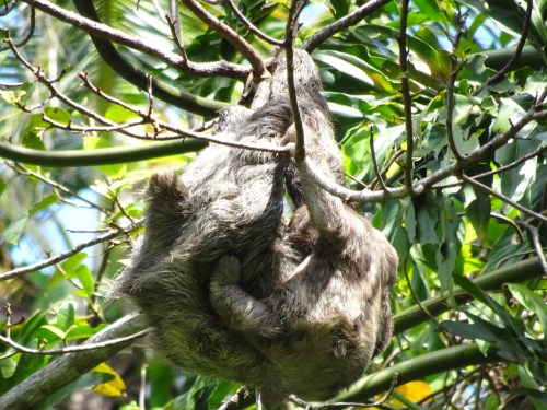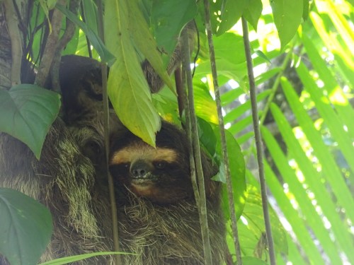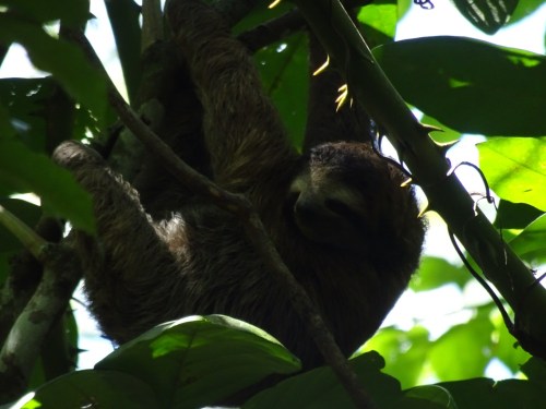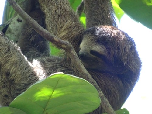 The sloth below is about 11 months old. A ranger came past and told us that last week it had been with it’s mum and she had left it to fend for itself (they stay with mum for about a year) and that she would have been one of the sloths we saw near Punta Cahuita.