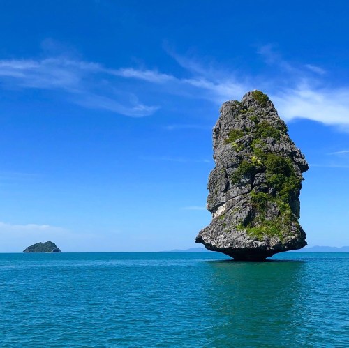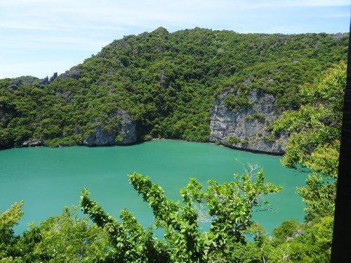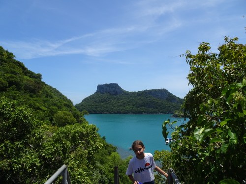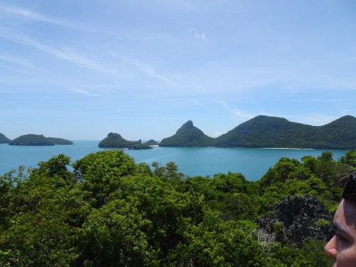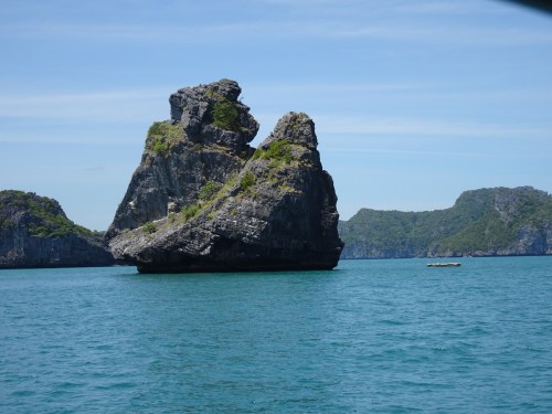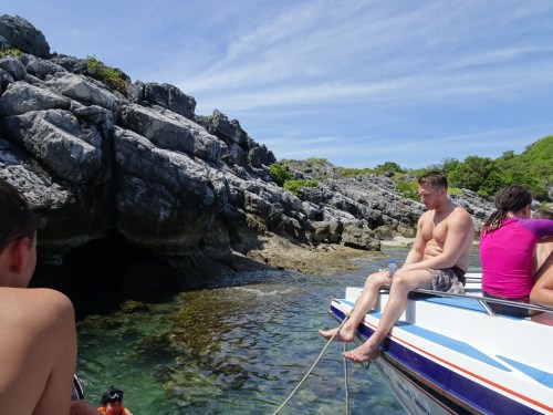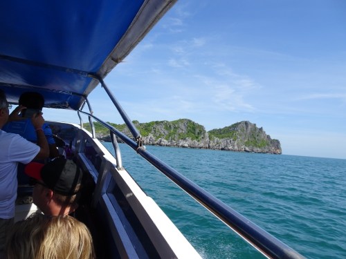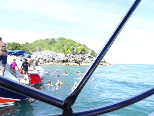 All aboard for a smooth speed boat ride out to Ang Thong. The first stop was just under an hour from the harbour and was for snorkelling at a “reef” next to one of the smaller islands in the park. When we got there, there had to be at least 10 boats already there. Each boat holds about 25 people so you can imagine the crowds and people are in the water where they are trying to park the boats. Not long after we got there at least another 3 boats pulled up. Linsey was pretty much ready to finish as soon as she saw the crowds.