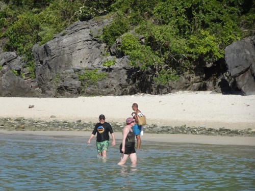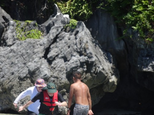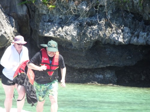 I thought from here we might head to lunch (it was 12:30) but it was off to sea kayaking. This was quit fun Stu and Linsey were on the same kayak and I had one to myself. Note it is painful on the legs to sit in a kayak after climbing on the previous island. Linsey and Stu were a little late back to the boat and the dock was hot.