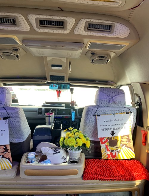 Our pick up was on time and our ride was this tripped up minivan than was built to party. He picked up a family of four at the Novotel as well as us then another couple before heading to the pier.