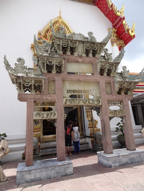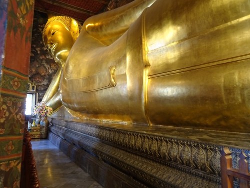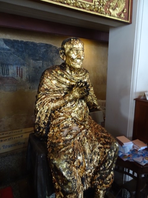 From here we had a coffee at the Naval Wives shop to get out of the heat and then walked around to Wat Pho. This temple is beautiful and the reclining buddha is very well maintained. Again lots of people and we got a little sick of shoes on, shoes off, shoes back on so we stopped going into a lot of the temple buildings including the coronation hall.