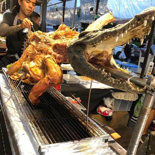 We ate from the hawker area which was tourist prices but not tourist flavours – the food was all pretty much legitimate (not aimed at tourists) from a spice and flavour level. They were even serving crocodile on a spit. The crowds were pouring off the free boat, so leaving at just after 8pm was a good idea as I imagine the return shuttles would just get busier and the wait longer.