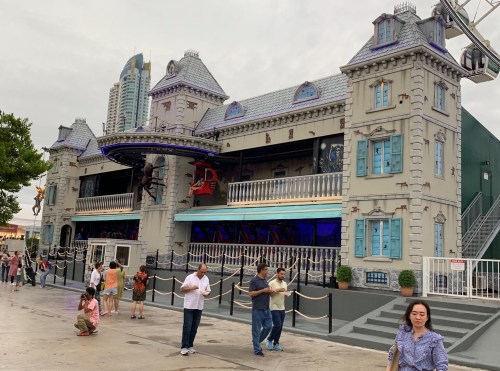After we cooled down we headed over to Asiatique which is open from 4pm. It is a mix high end restaurants, street vendors, market stalls and amusement park. It is in some old restored warehouses and docks. It really is something to be experienced. Stu and I walked through all the market stalls and went on the haunted house.