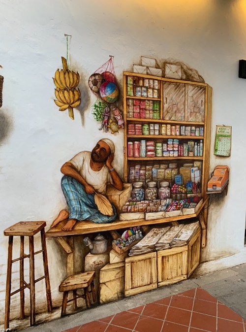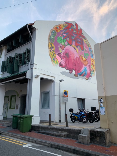 We explored the market stalls then found an old part we’d never explored called Ann Siang Hill Park. It is full of old shopfronts that have been converted to boutique hotels, bars and restaurants. There is a lot of cool graffiti around too. We may have to explore further when we are back next time. We picked up Stu’s Tin Tin resin as well.