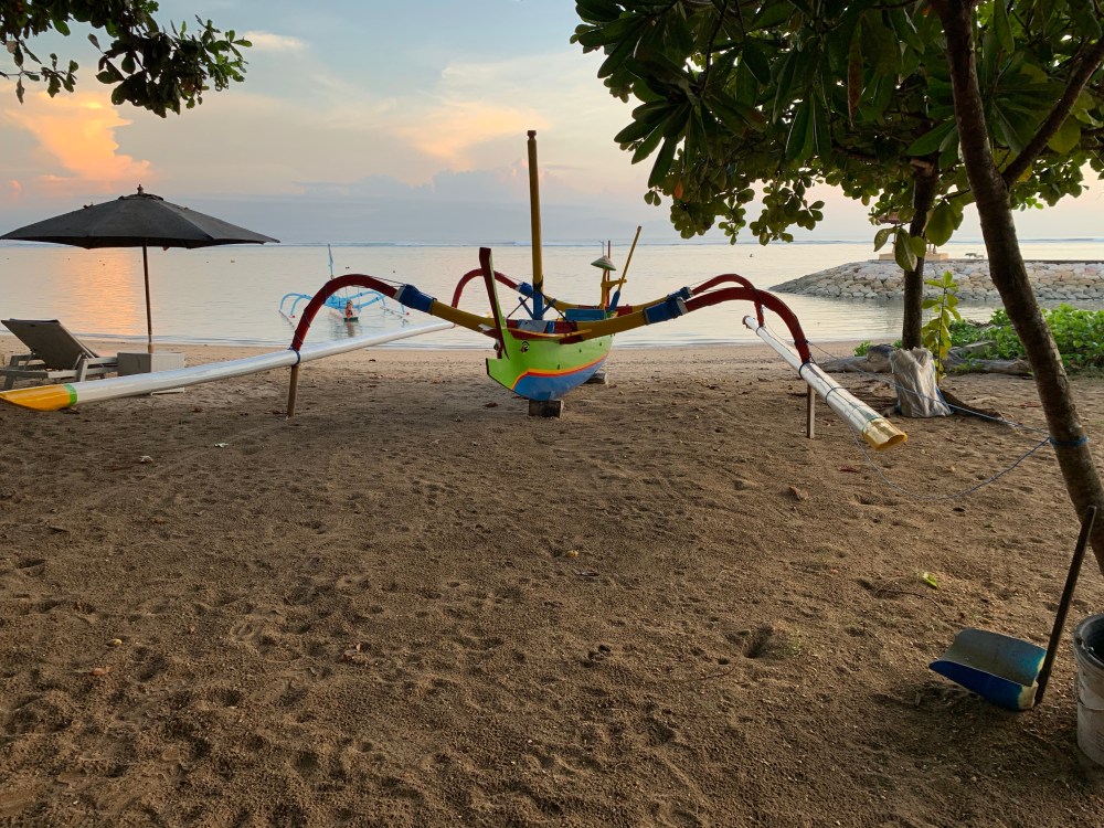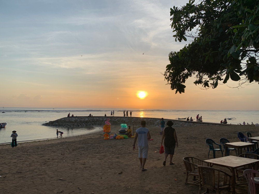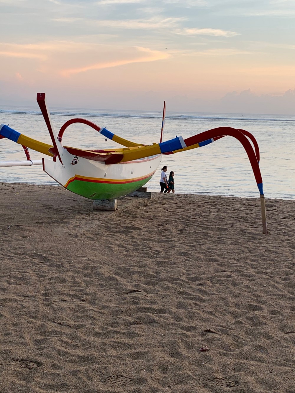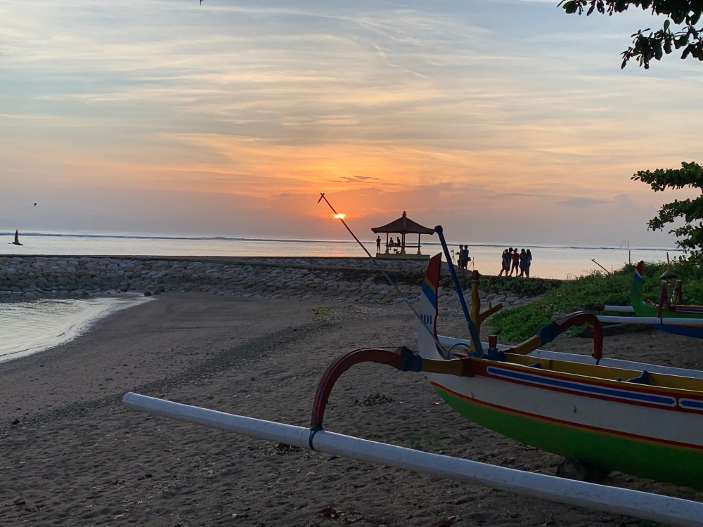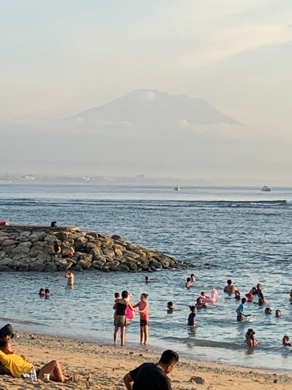 We did an early morning walk this morning (about 7km) and were on the beach for sunrise and an almost unconcealed Mt Agung.