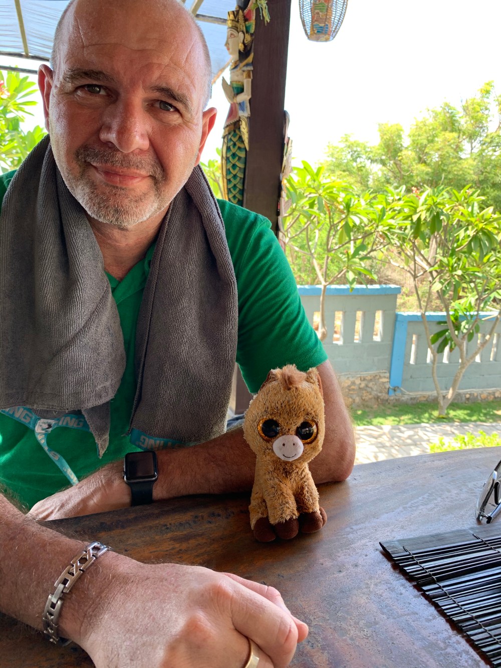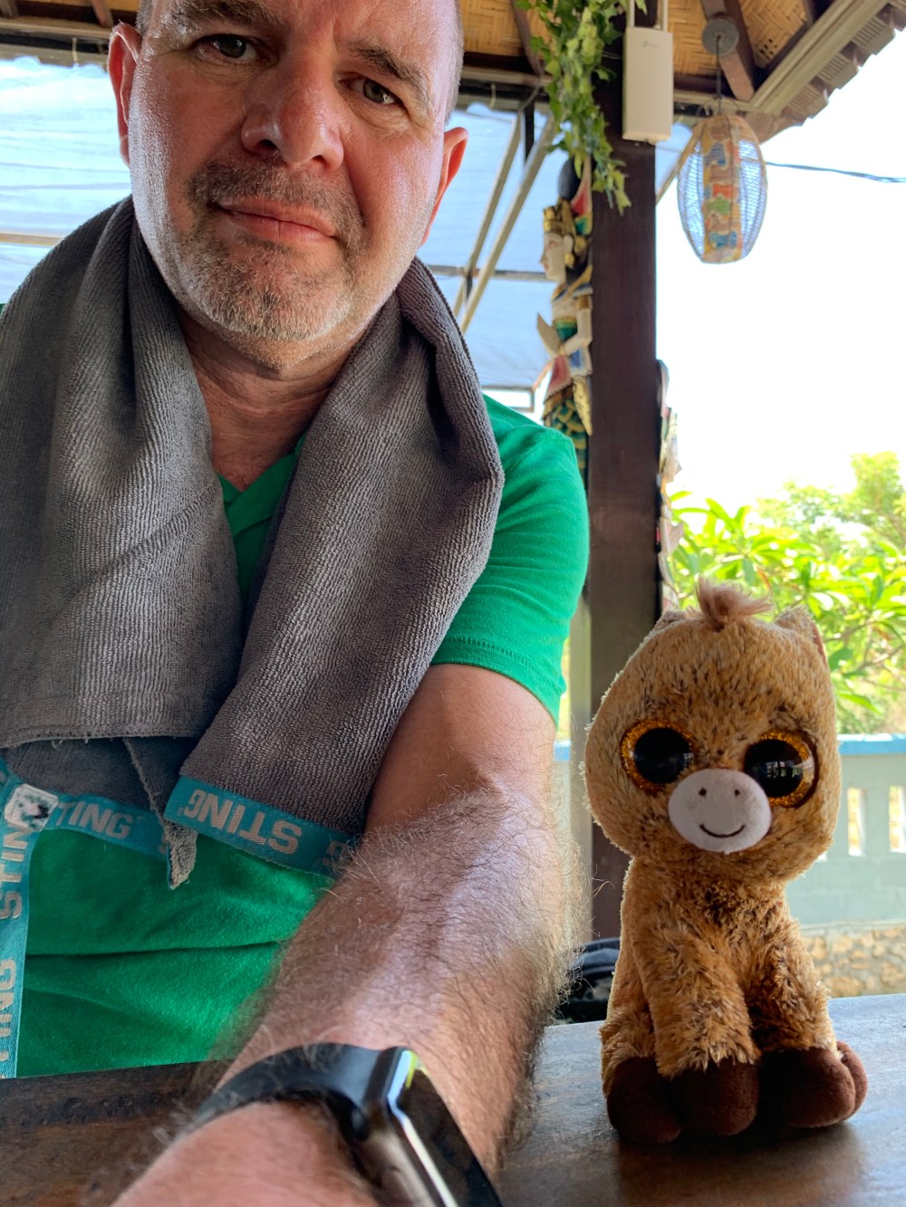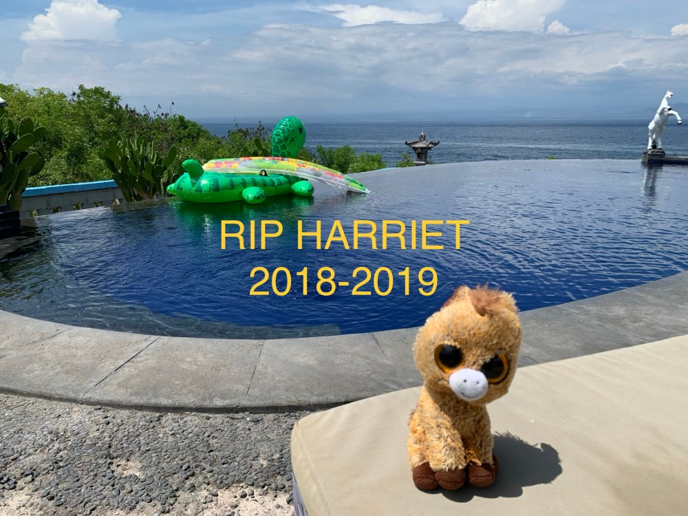 After lunch one of the staff brought their young baby daughter out (she was probably about 6/9 months old. I pulled Harriet out to show her and the mother thought I was giving it to her. Balinese don’t have a lot and when the mother was so thankful at receiving and the little girl seemed to really like Harriet I decided that she needed Harriet more than I did. So I’m sorry Lauren – I lost Harriet to a little girl on Lembongan who really loved Harriet so Harriet will be staying on a tropical island as a little girls companion. Below is the last picture I took of Harriet.