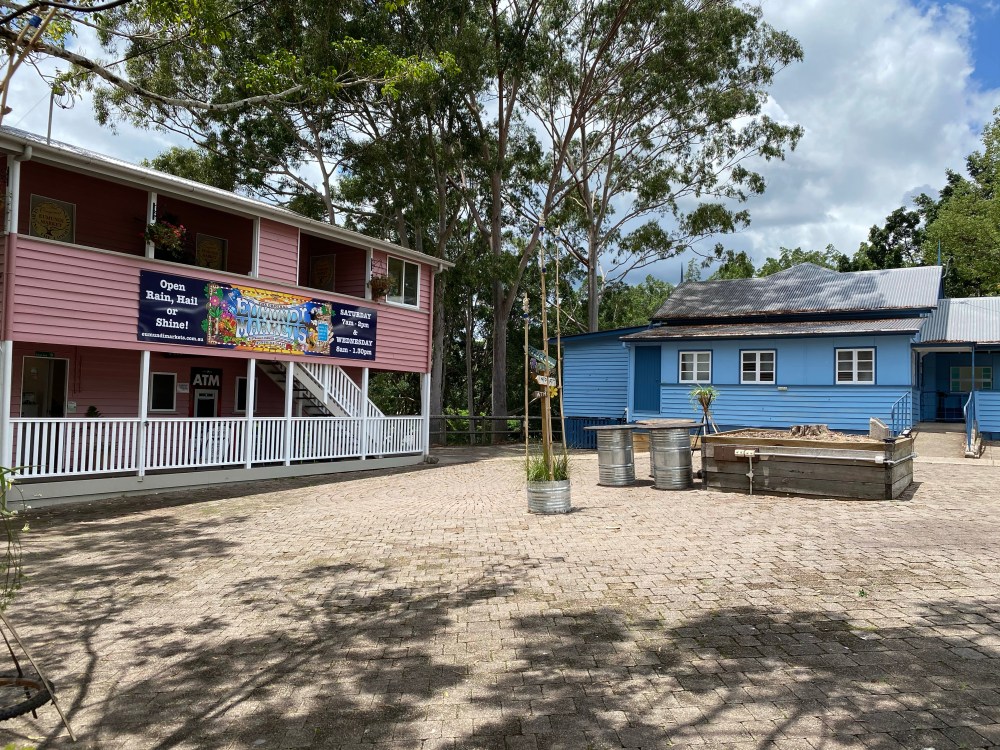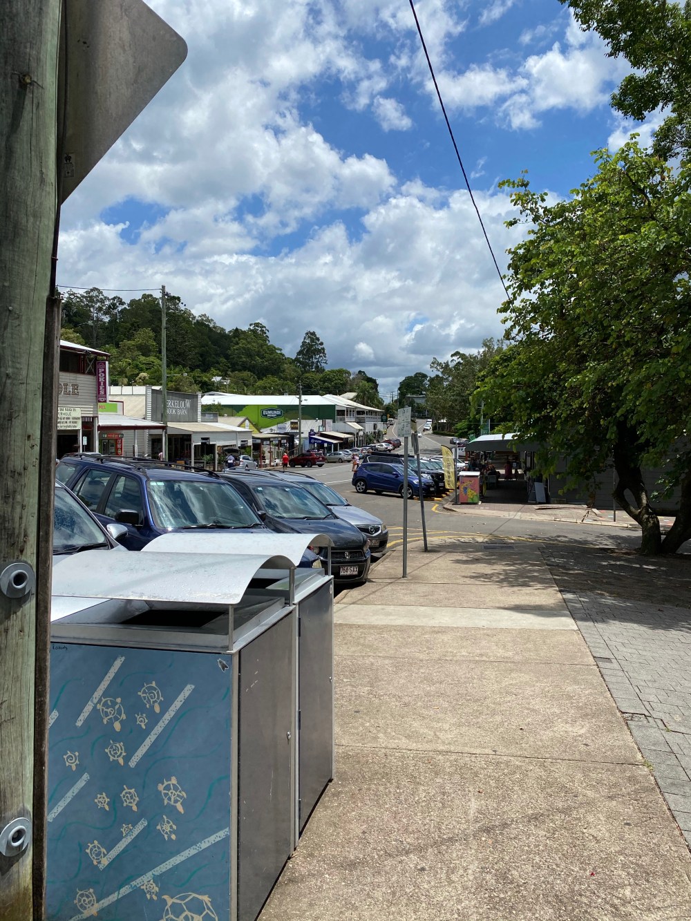 Our first stop was the little town of Eumundi where we grabbed a coffee and let Eric strecthc his legs. On Saturdays they have the very popular Eumundi Markets but we will probably go to the hinterland on Saturday out to Montville and Maleny. Eumundi has a very pretty Main Street and it’s always fun to look in all of the windows.