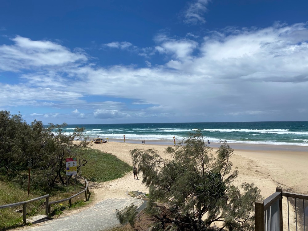 We still had some time to kill and weren’t feeling like lunch yet so we stopped at Sunshine Beach to stretch our legs and give Eric some water. After a light shower at Eumundi the weather here has been perfect.