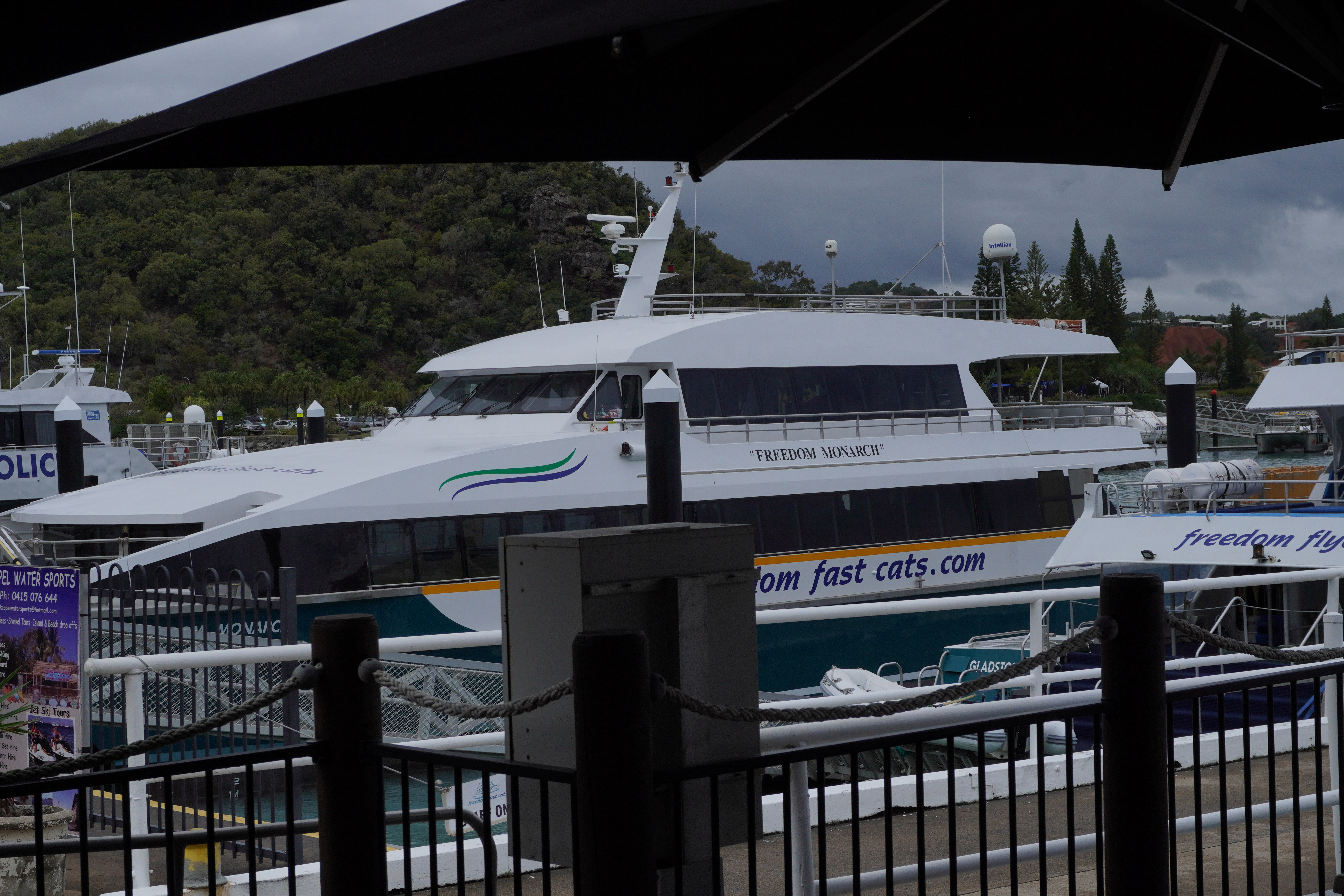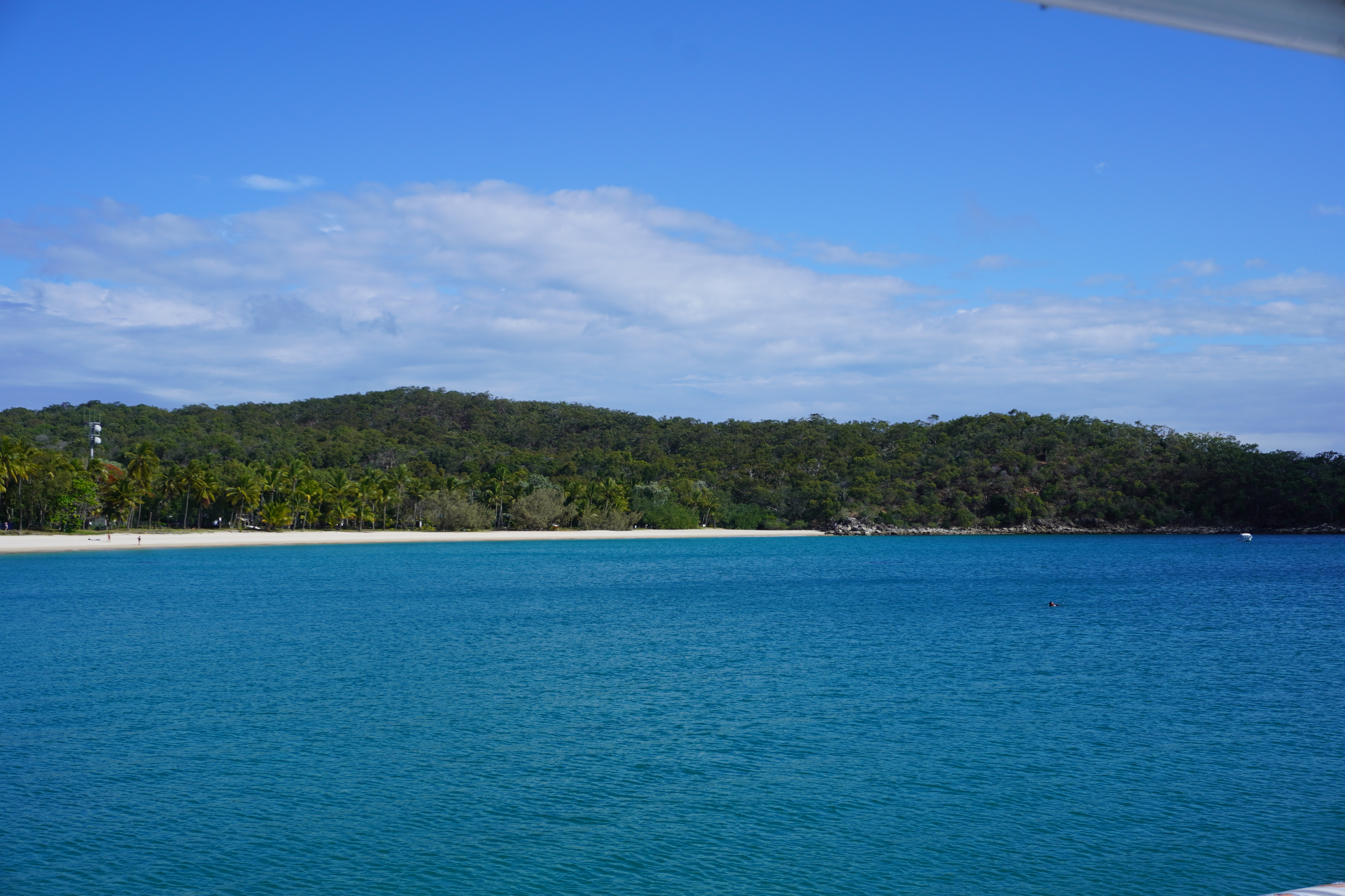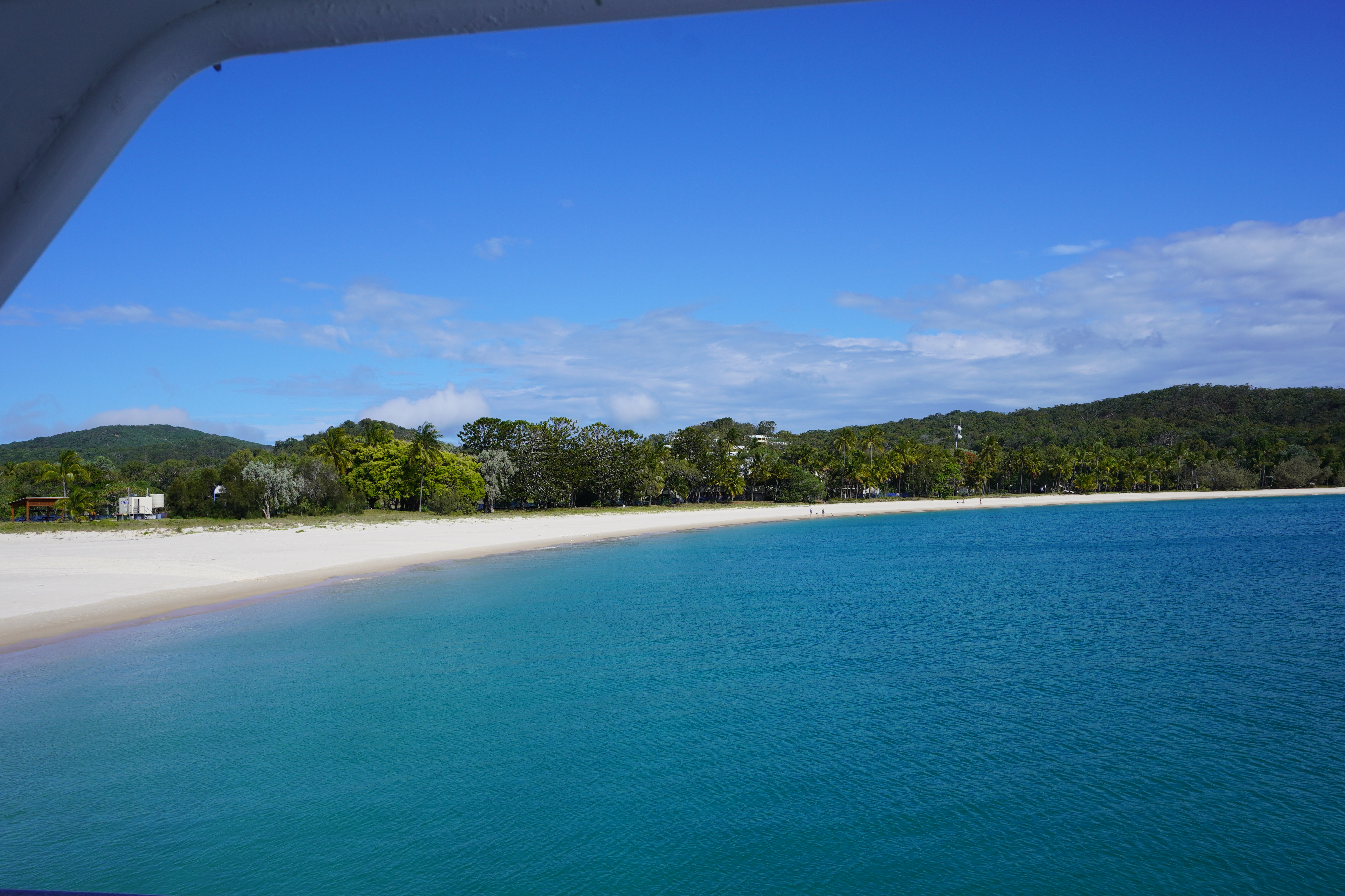 The ferry leaves from Rosslyn Harbour and takes about 30 minutes to get to Great Keppel and lands on the beach at Great Keppel. They are saying if Gina Reinhardt takes over the resort on the island she may build a marina so in future you may not land on the beach any more.