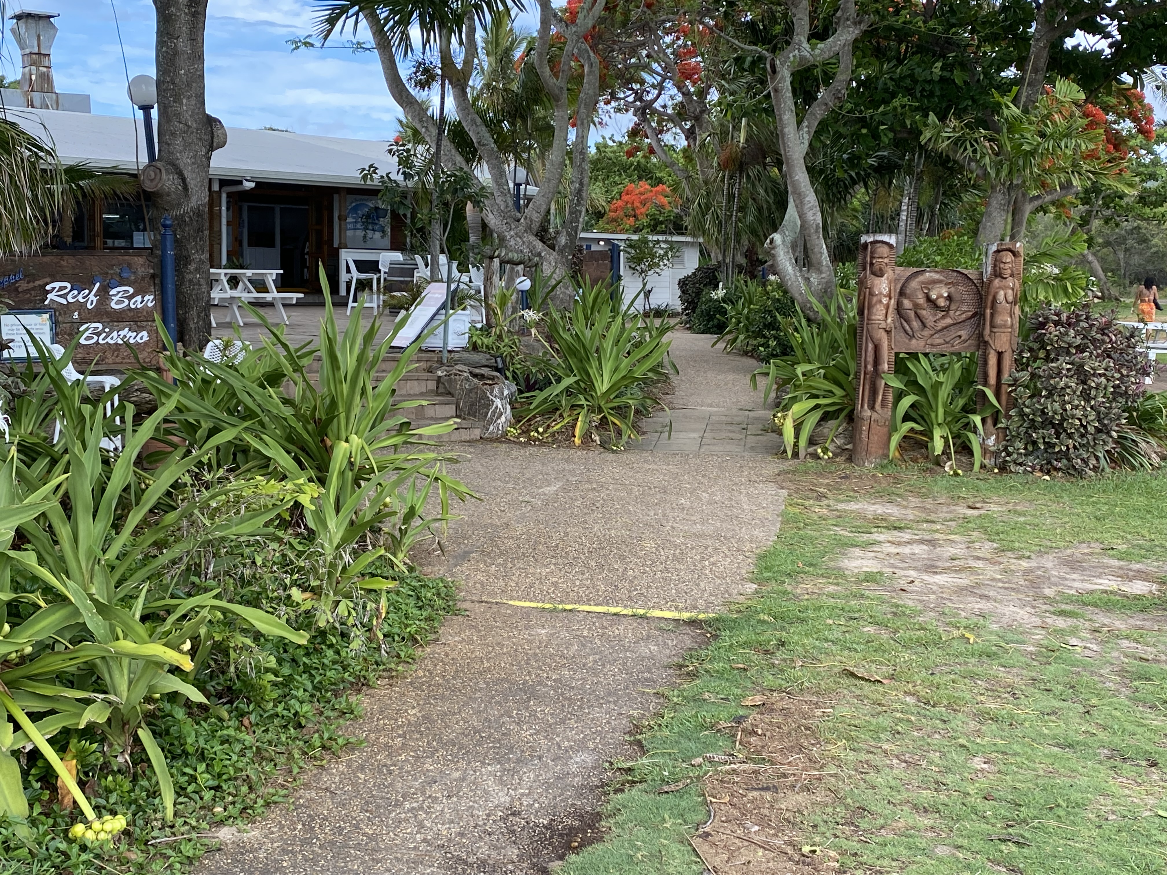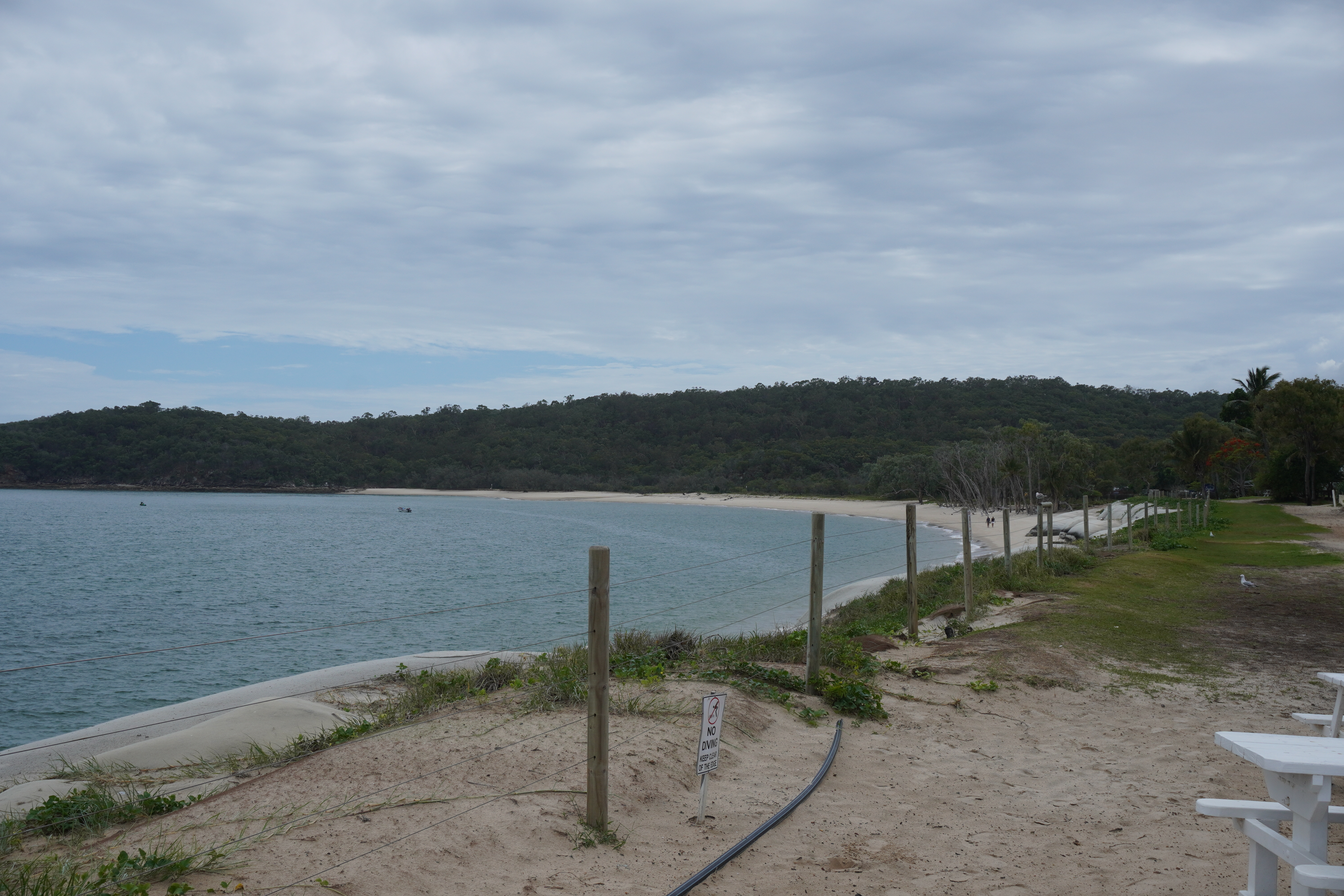 We walked up to the Hideaway Resort and had a coffee then went down to the beach for a swim/walk. Neither of the dogs liked the water. We saw a couple of Sting Rays swimming in the shallows and a couple of turtles were playing out near a boat anchored off the beach.