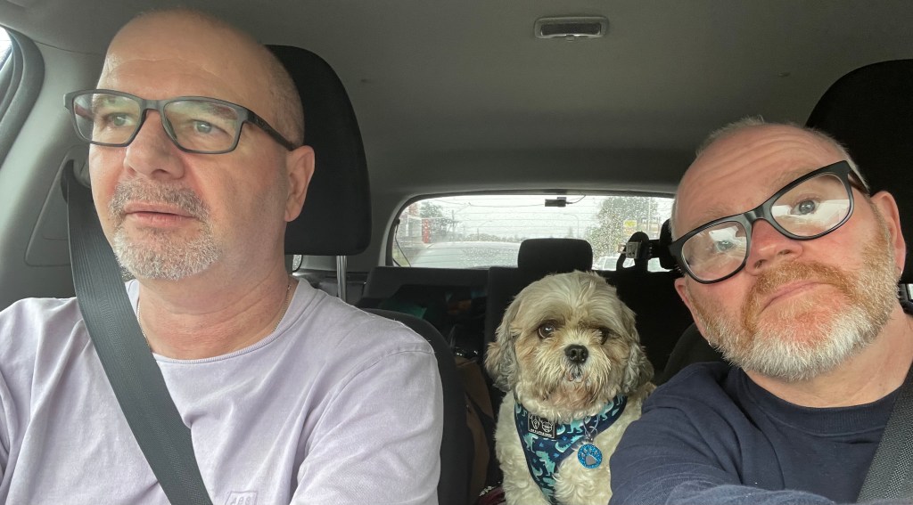 Eric hasn’t enjoyed the car – he is constantly trying to come up front so his seat belt got shortened about an hour into day 2 – again in the rain.