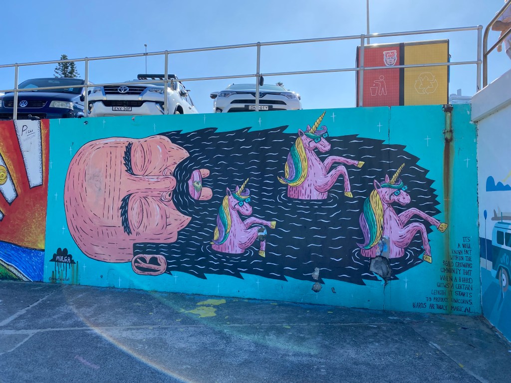 We saw some blow up Quokkas (WA travel add) which we had to photograph – ok I had to photograph because Quokkas belong on a photo montage of Bondi. From there we headed back to the car to Surry Hills (Stu’s choice). The graffiti is by Mulga – he has some mugs he produced which I have a couple of.