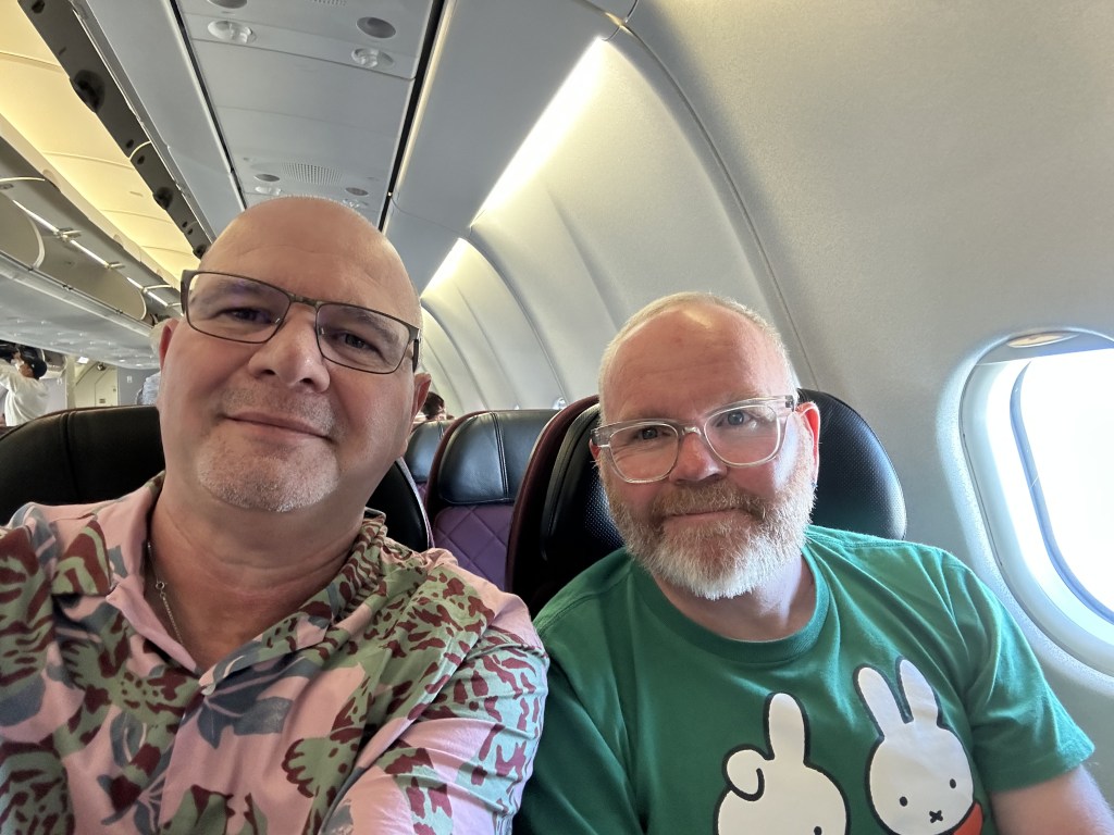 We got through check-in, customs and immigration without any hassles, although Stu found out what happens when you leave your glasses on at the immigration gate.