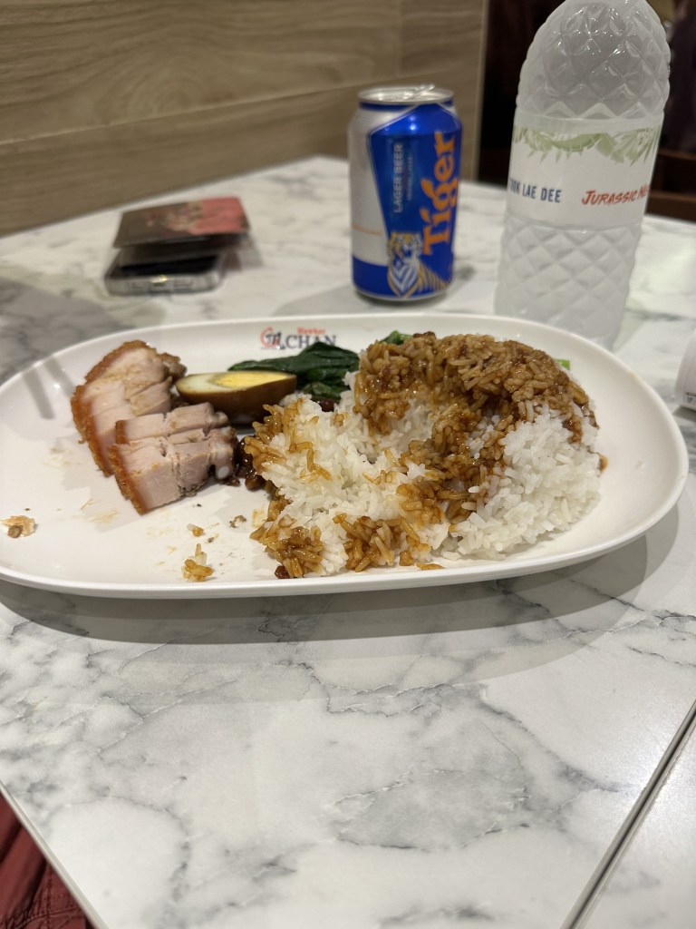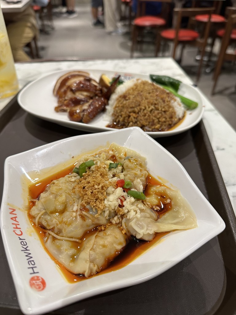 We had dinner at Chinatown and went to the Michelin starred soya chicken rice hawker shop – the food was very nice but we went at the end of the night so next time we will try and get there a little bit earlier. The upside was that there were plenty of tables. I had the soya chicken and Stu had the roast pork. We shared a spicey dumplings – we’re in Singapore