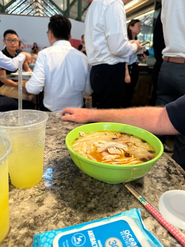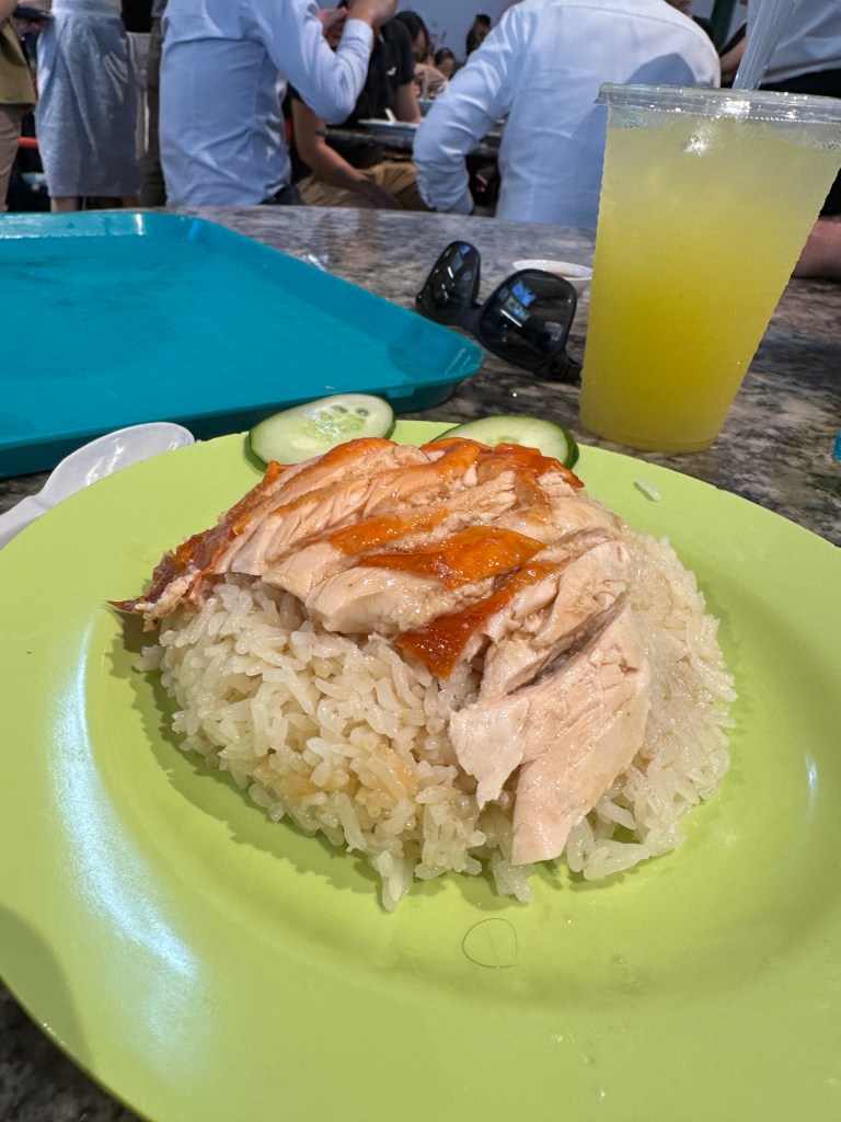 We had a Singaporean lunch at Lau Pa Sat – I had Hainanese Chicken and Stu had a chicken and prawn soup. The food is amazing, so fresh and the price can’t b beaten. With drinks we spend about $12 for both meals and drinks.