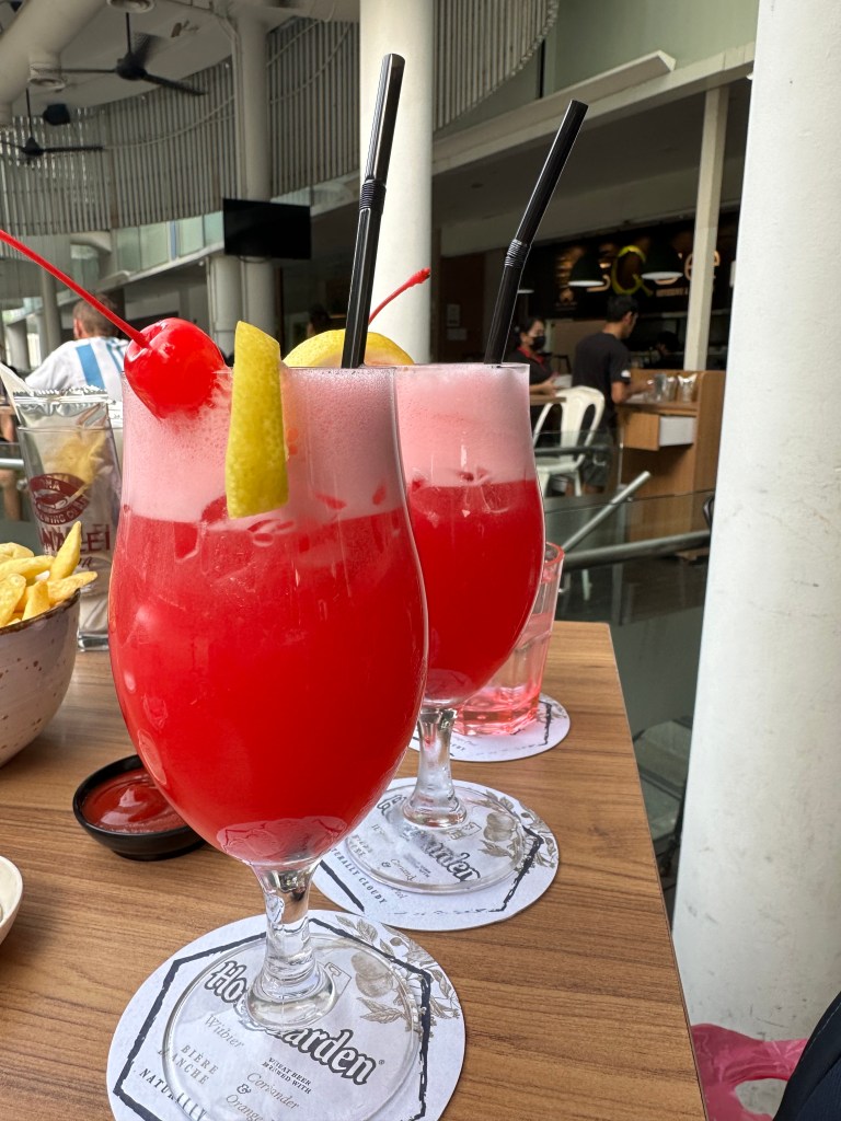 The drink was a Singapore Sling. I’ll take a photo of the keyring today.