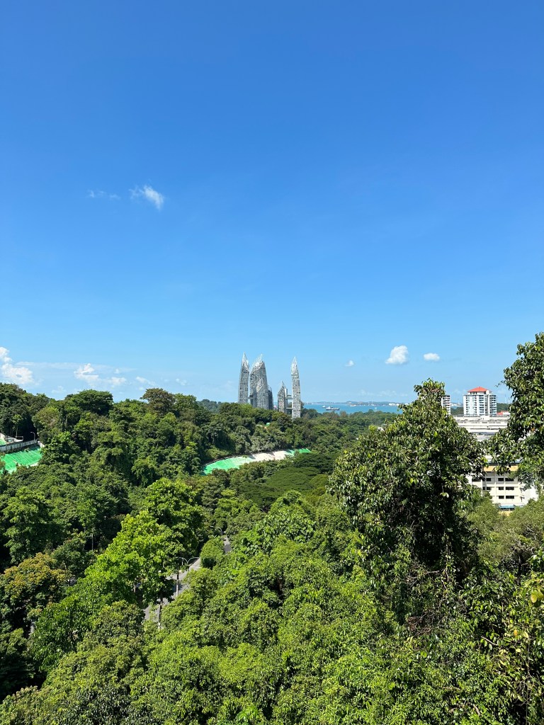 Once over Henderson Waves you are at Mt Faber and you have to climb the rest of the way either following the road or a set of stairs straight to the top. We’d had enough of stairs so took the path that stayed with the road. The view from the top of Mt Faber is amazing. We had a cold drink watching the cable cars going down to Harbourfornt. Once we had rested we walked the last couple of kilometres down to Harbourfront.
