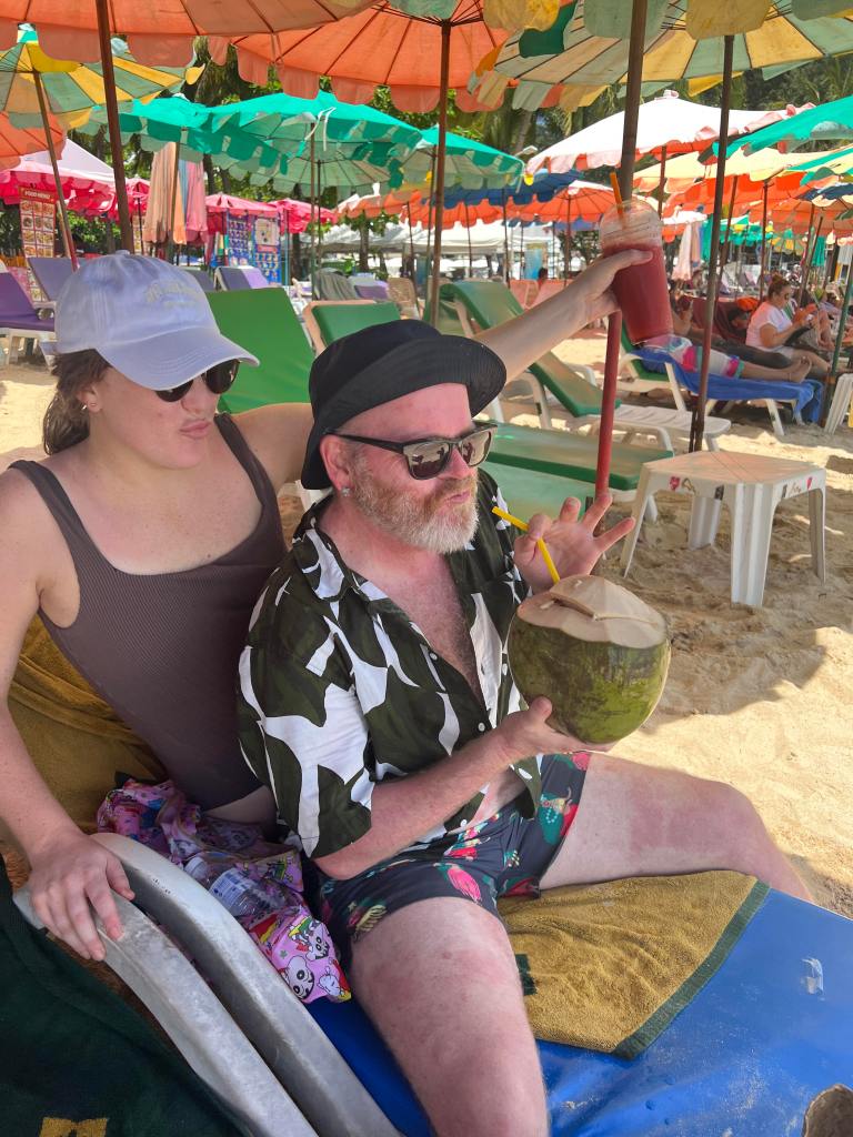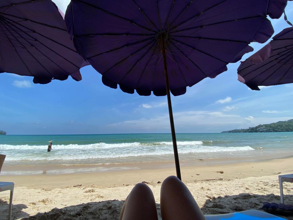 We hit the beach for a couple of hours. We caught a tuk tuk to Kamala Beach and hired some chairs. The water was a bit dirty so I didn’t go in in case I kicked something with my left foot. The weather was amazing though and just sitting under the umbrellas on the sand for a few hours made our day.
