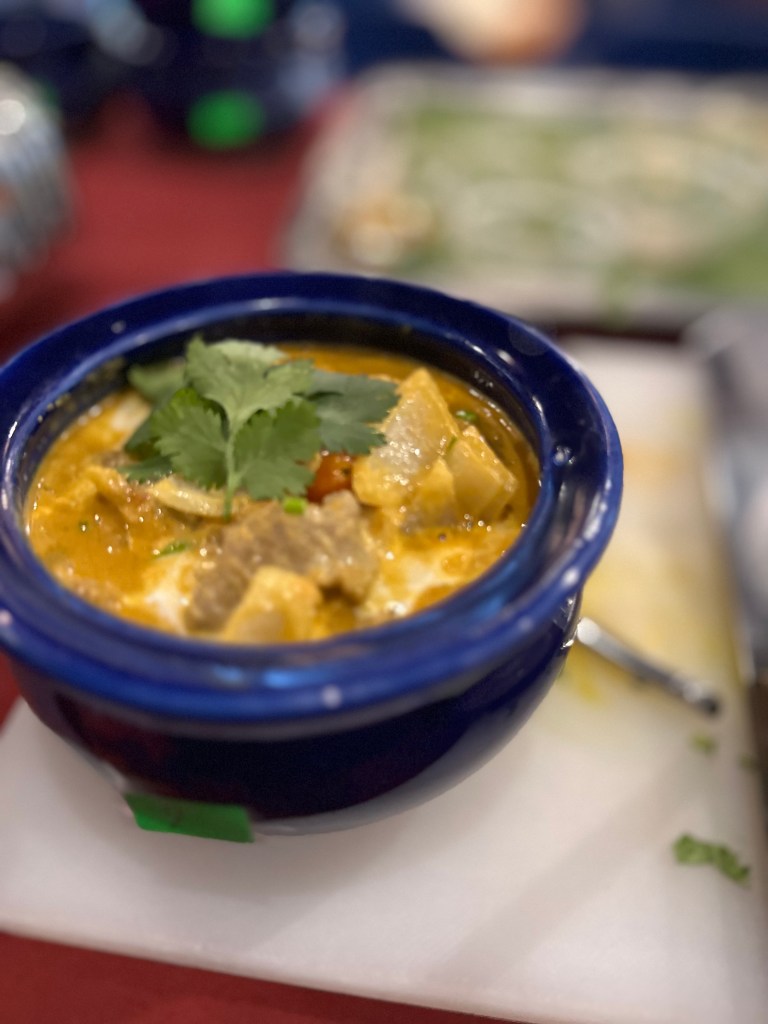 The managed to fit four dishes in, we made a Beef Yellow Curry, Tom Yum (chicken for me prawn for everyone else), a stir fry (chicken for me fish for everyone else) and Mango Sticky Rice. The chef, Joy, did really well and stayed calm as she tried to compress 3.5 hours in to 2.25 hours.
