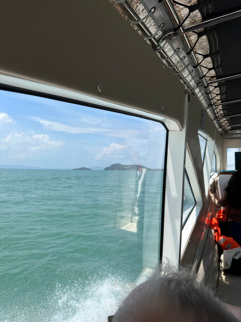 We were picked up at 11:30 to begin our journey over to Phi Phi Island. We went by van to the Royal Phuket Marina where we were met by hotel staff who whisked our bags off while we sat in an airconditioned waiting room for the boat to depart at 1. The boat trip is about an hour and the conditions were really good – very little bouncing today as there wasn’t much wind.