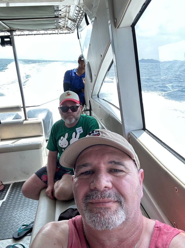 When we arrived at Phi Phi Island we were all really glad to have left Phuket. The resort is amazing and the water around it is very clear and clean. I had upgraded Stu and I to an Ocean Front Junior Suite which has direct access to the sea. The view is amazing all we can see if sea and other islands, we don’t have any bungalows in front of us.