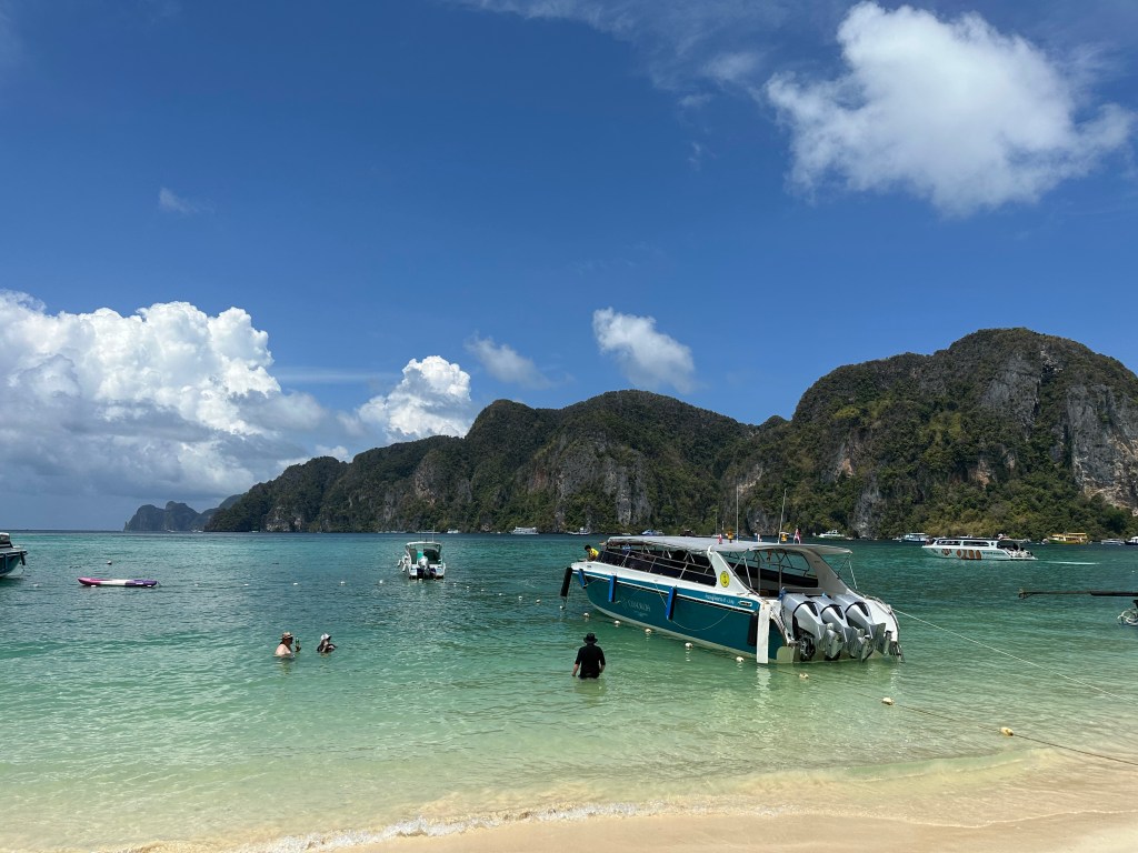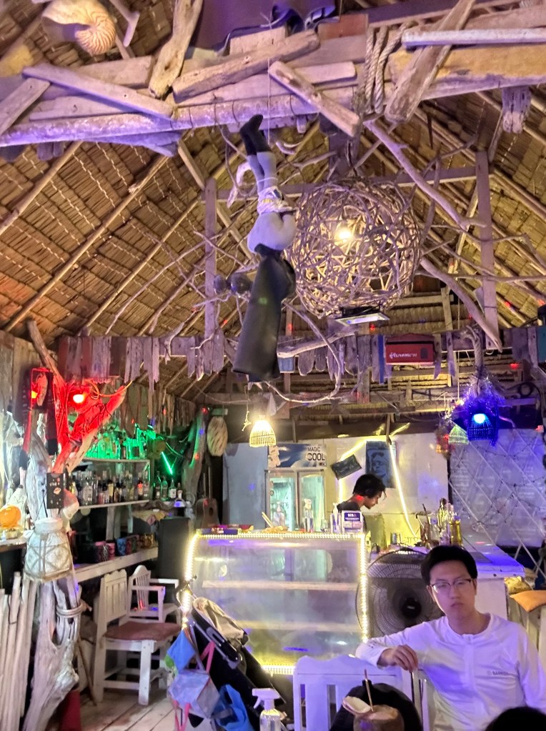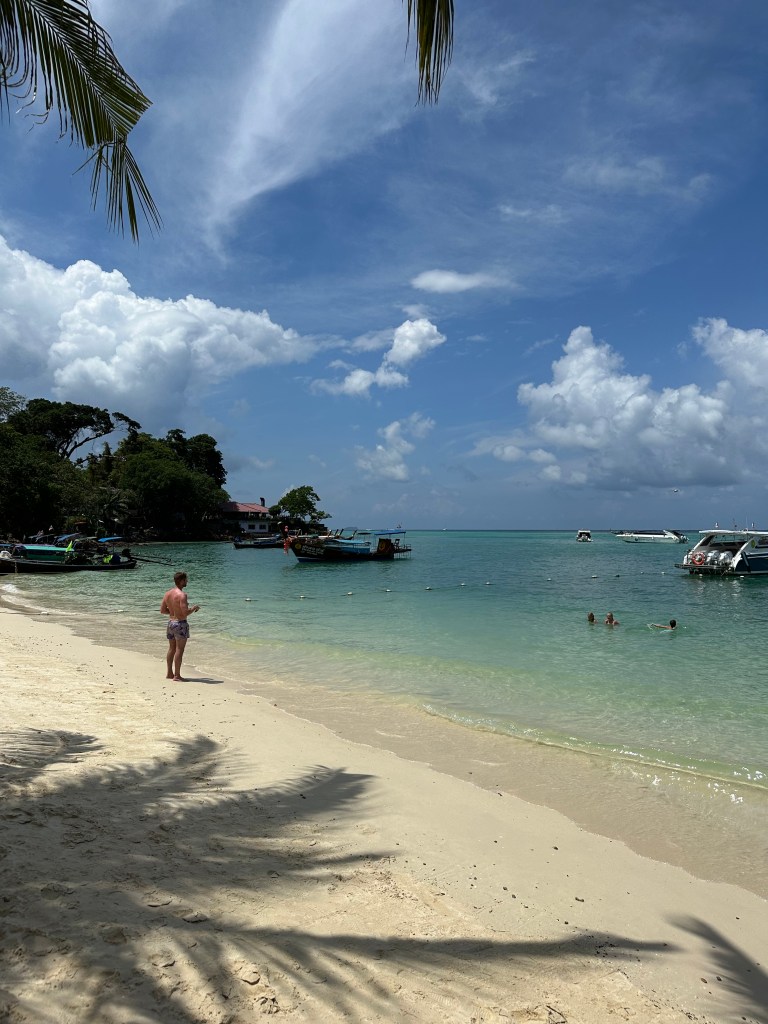 Ton Sai like everything on this island has changed so much. There are a lot of permanent structures that weren’t here when we came 12 years ago. We caught up with everyone at a little bit of beach where the longtails pull up. There was a family there where the father seemed to have every piece of photographic equipment know t god and man. He kept taking photo/movies of the kids with camera, drone and go-pro. The mum kept telling the kids to move away from us – they were all very pretty and blonde (insta perfect family). They seemed very unimpressed that we continued to swim while they quite obviously had more right to the beach than us. What was our response – we all stayed in the water