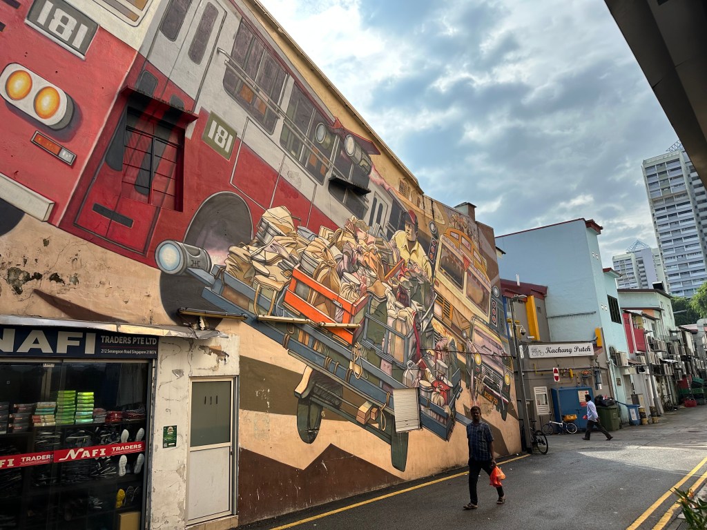 We met up with the rest of the gang after breakfast and headed out for the day. We walked along Serangoon Rd back towards the Hilton Garden Inn where we stayed when we came here for Stu’s birthday. From here we caught the MRT to Bugis Street where we may have all participated in a little retail therapy. There is very little that fits me here in Singapore, however when we were in the Bugis Street Market there was a shop with shirts up to 6XL (noting these are still Asian sizes). The woman said she had a shirt that would fit me and got me to try on a few shirts. I ended up buying two Bearbrick shirts which were “good quality because they are from Korea”. Stu ended up not buying anything after the woman made a comment about the shirt size he would need. I got two 3XL shirts which is a little demoralising but they are big and bulky so I could have probably bought 2XL.