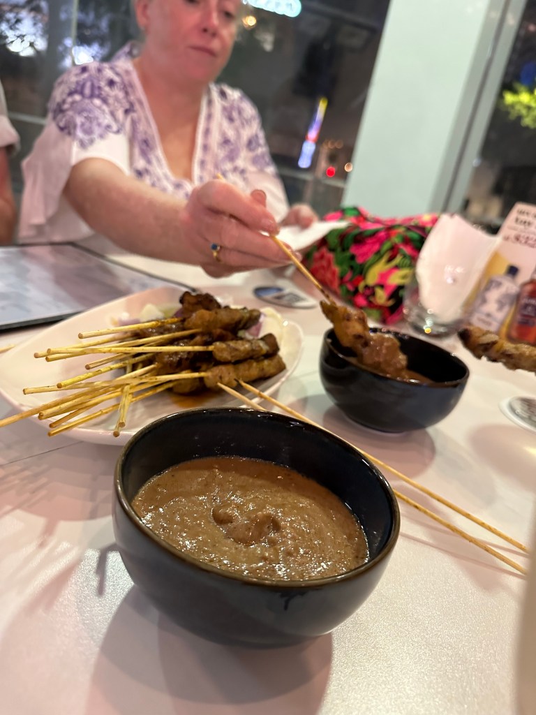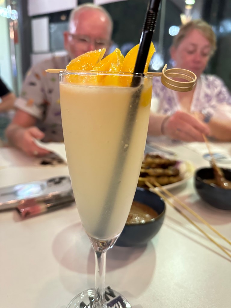 We cooled down in the hotel pool – pools in Singapore all seem to be freezing cold before we headed to the mall over the road and then pre-dinner cocktails. We went to a little place called Ash and Wen Cocktail Bar. If you are in Singapore and are in Little India head here for a dink. Cocktails are about $20 SGD ++ but worth every penny. I had a grapefruit mojito and a peach cocktail (I can’t remember the name of it) which were delicious. We also ordered some satay and wings which were delivered from a local hawker.