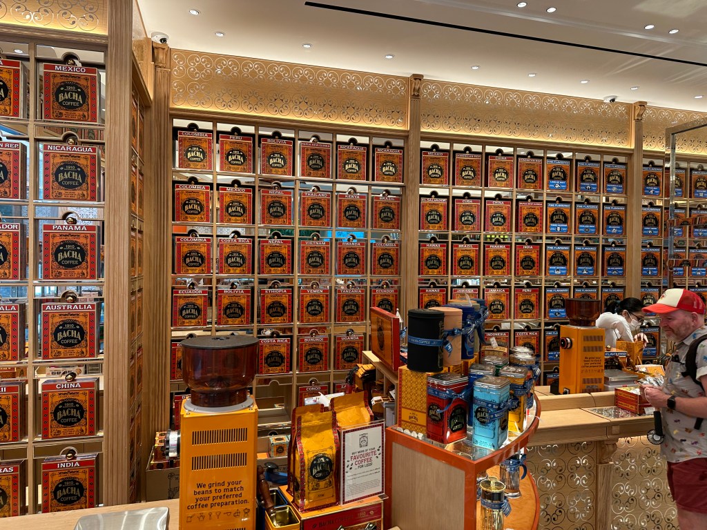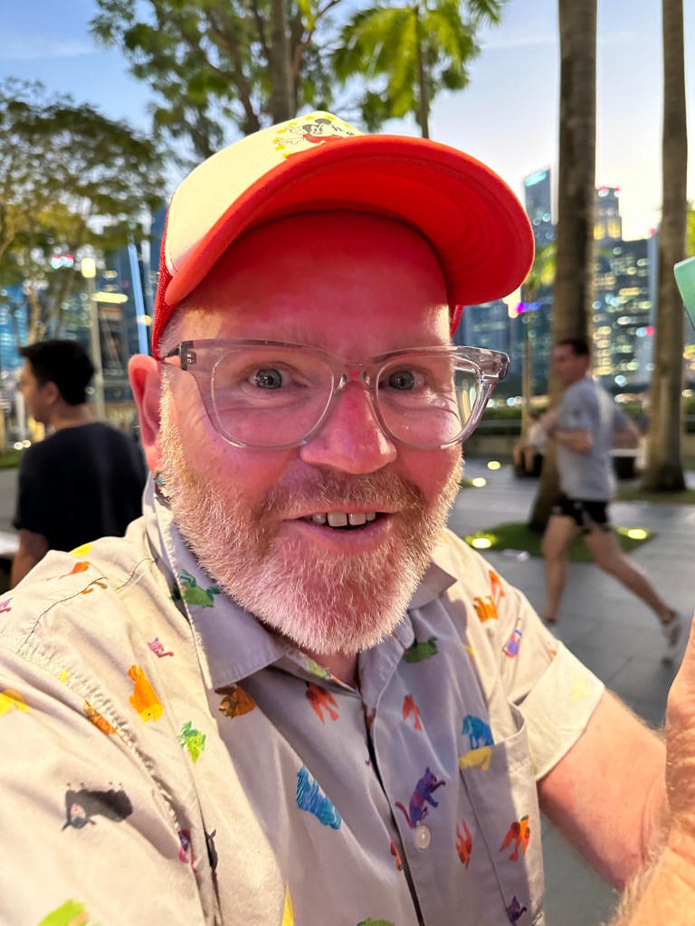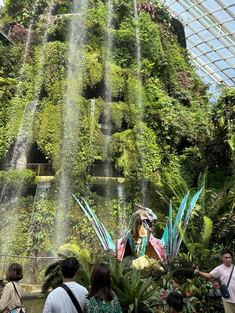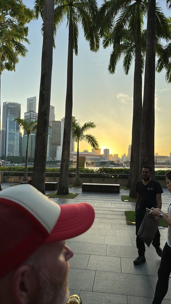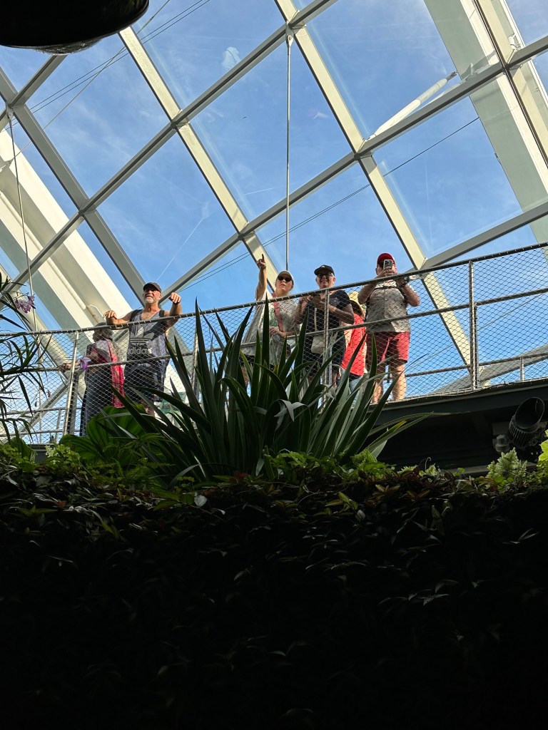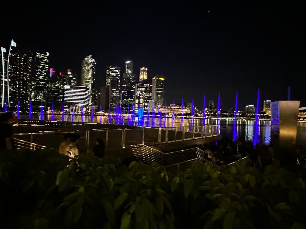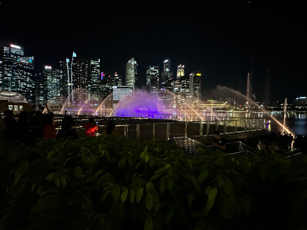 After the domes, Stu and I were a bit pooped and decided to go back and join Jayenne and Peter at Marina Bay Sands. The others did the skywalk and stayed for the light show. Stu and I went to Le Noir and had cocktails while the sun set. They had a live band for a little while who asked if it was anyone’s birthday – we said it was Stu’s (to make up for 2019) so they sung him Happy Birthday. We stayed for the Marina Bay Sands lightshow at 8 then headed back to the hotel very exhausted.