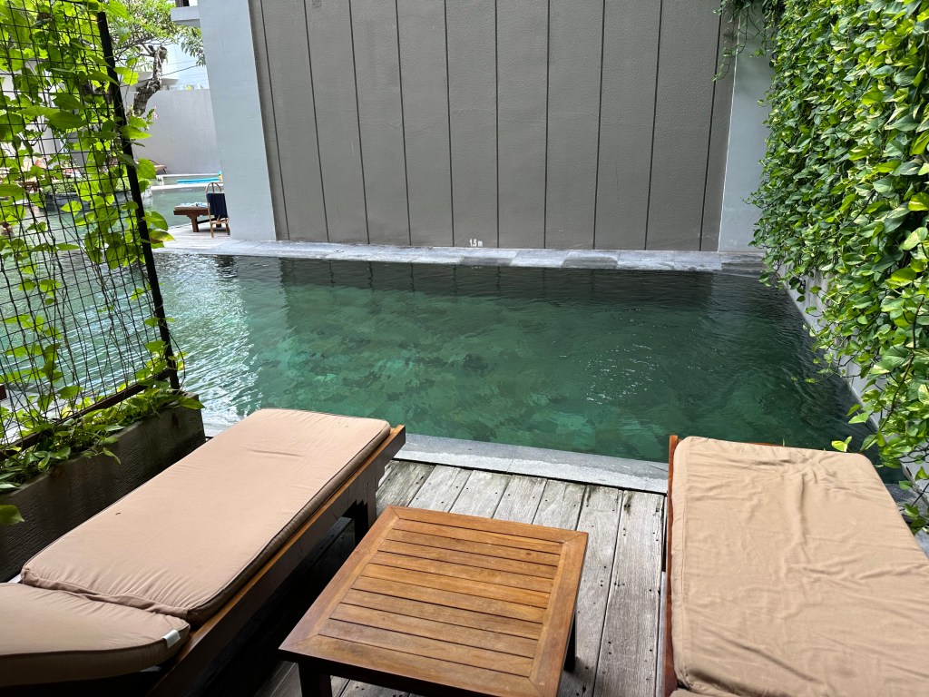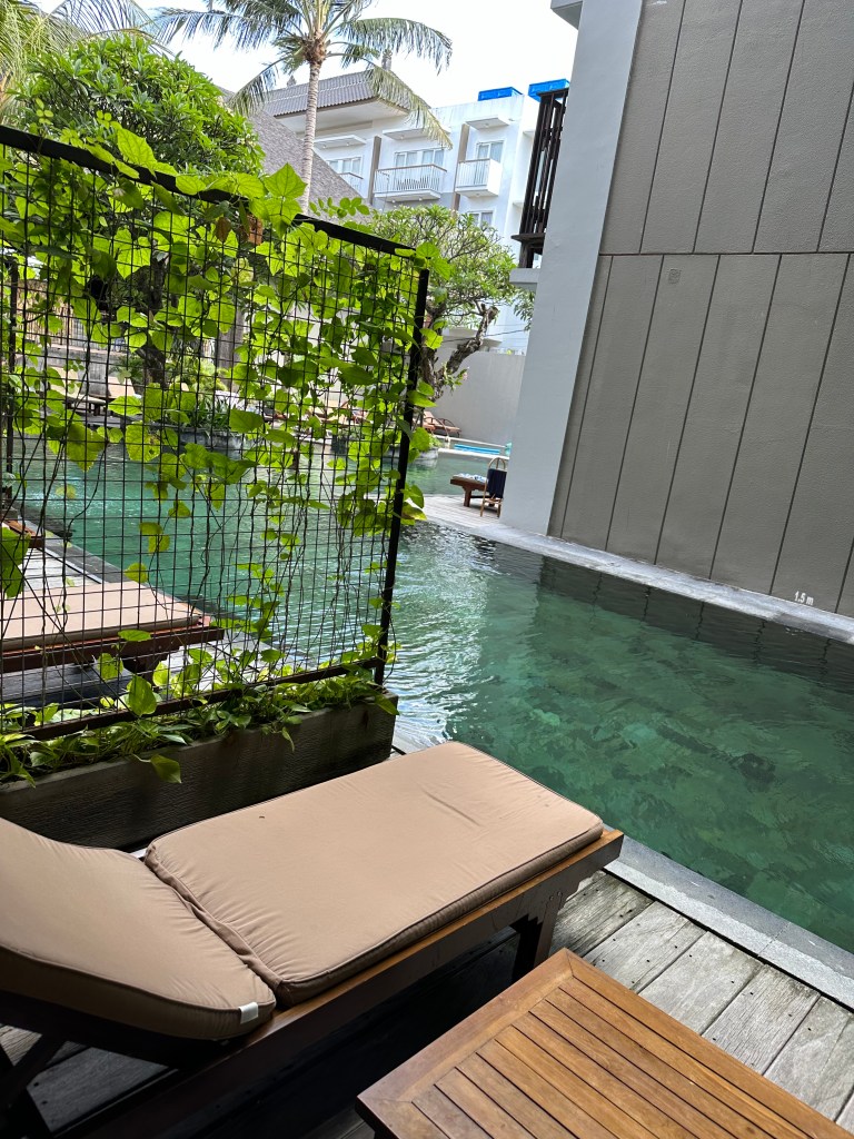 We have got a pool access room which means we can walk straight out of our room into the pool. The water is a bit cold but it was refreshing after the flight. We are surprised that it’s actually hotter at home than here.