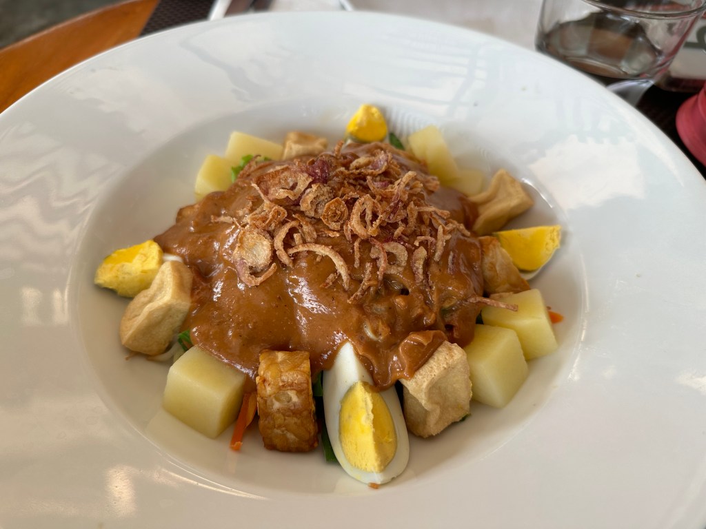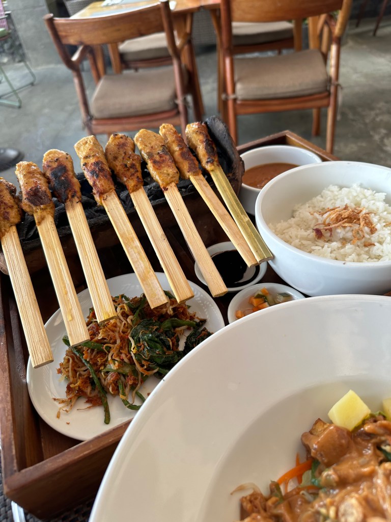 We had a late lunch of Satay Lilit Ayam and Gado Gado before exploring Sanur. We were surprised that after such a full flight, how few tourists there are in Sanur. It is very quiet most restaurants only had one or two tables being used and the night market was empty. Things don’t seem to have recovered from COVID in Sanur. The big ION shopping centre is still being built so maybe we are here just before or after peak tourist season.