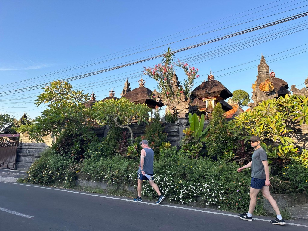 Today is Spa day. We started our day with a walk through the streets around the villa and then came back for our breakfast. Breakfast at the villa today included Balinese options with some sticky rice including sticky rice with pumpkin 🎃🤢yes I am a bit of a drama queen. I enjoyed the sticky rice cakes with palm sugar syrup and coconut and even the black sticky rice, just not the one with pumpkin.