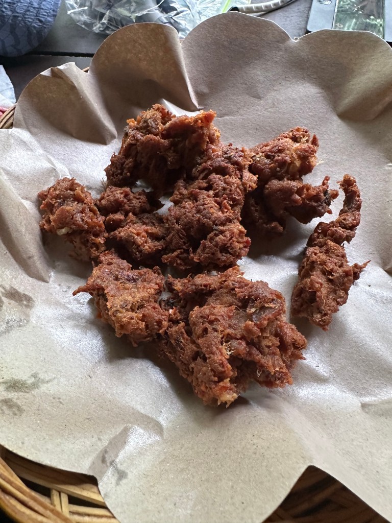 Stu and I decided we’re going to go into Ubud after breakfast and spend a few hours walking around. I stupidly lost my fan and haven’t seen any in Ubud, so no fan, no towel (I left it at the villa) and no water bottle (I left it behind too), I felt like a Bali newby lol. We had lunch at Ibu Oka I ordered the fried pork which was delicious. A big storm rolled through while we were eating lunch but it didn’t dump much rain.