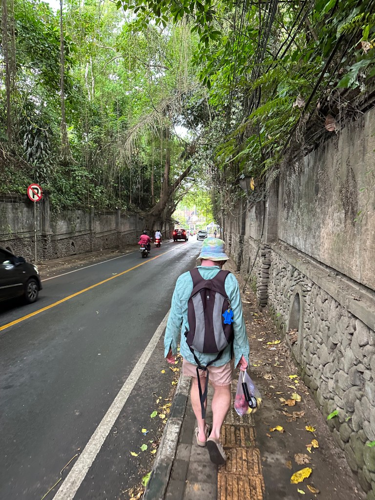 Stu and I decided to walk to the Bintang Supermarket which was a couple of kms. It was very steamy. We bought some groceries and ice thinking our grab (Indonesian Uber) would only take a few minutes – it took 20 and the ice was a bit melted by the time we were picked up and got to the villas.