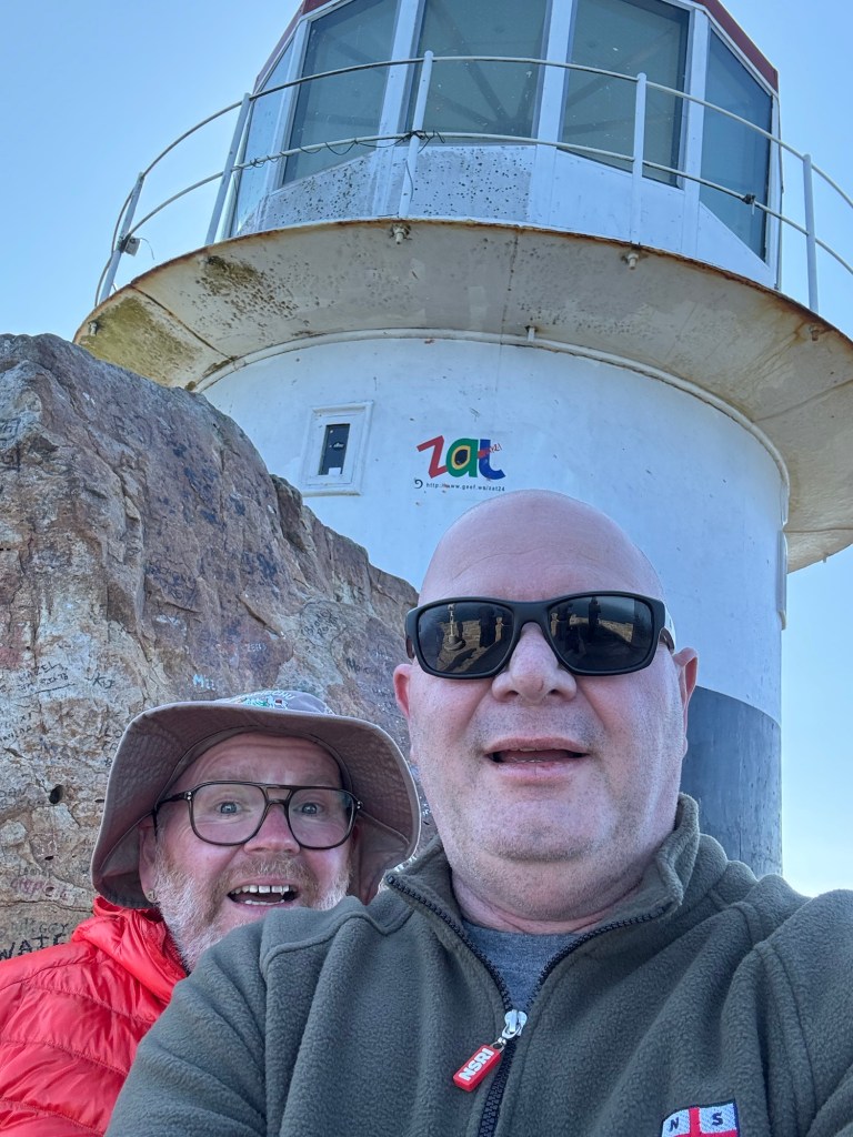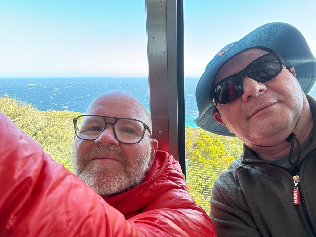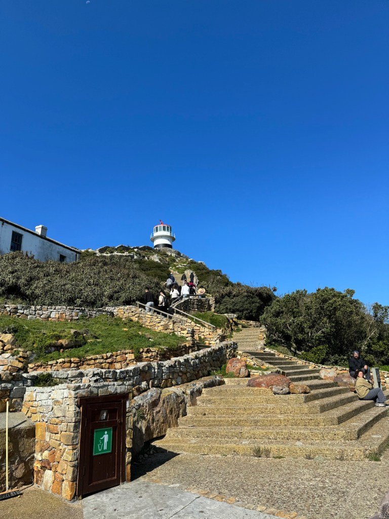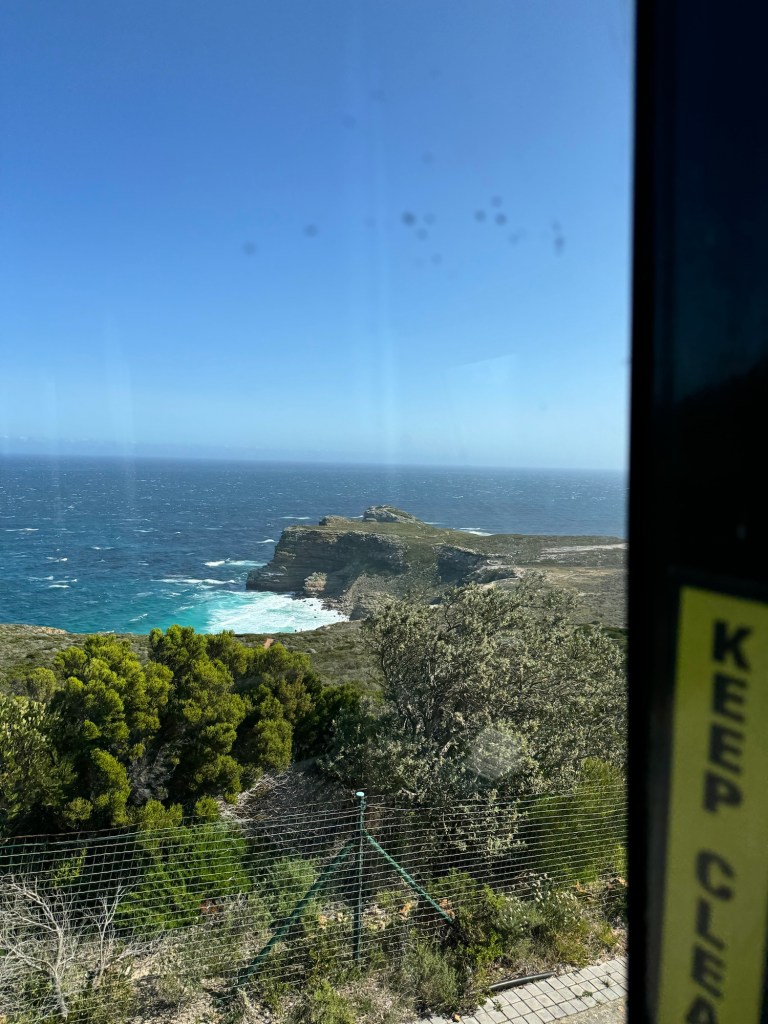 We then moved down to the Cape of Good Hope. The wind was very very strong and Stu and I decided to go up the funicular to the top while Peter and Jayenne stayed in the cafe (I think they made the right move). The view from the top was amazing but hard to take photos because I was holding on to my hat and the wind was pushing against my phone.