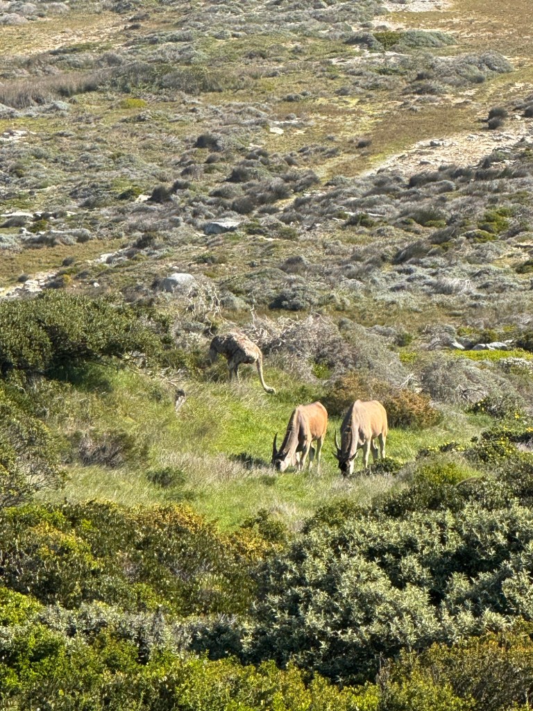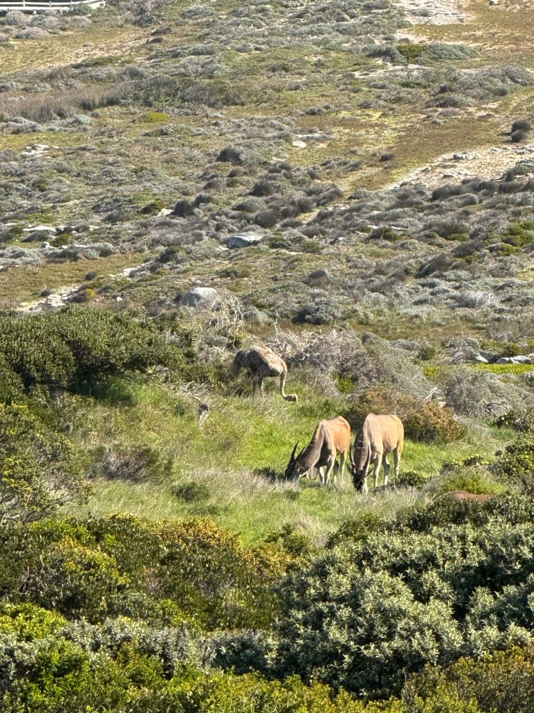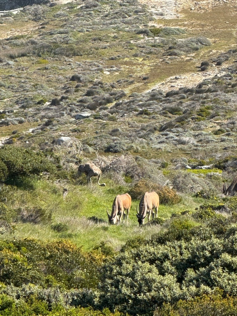 We saw Eland, Ostrich and Blesbok, Egyptian Geese and of course Baboons on our trip down to the Cape. Apparently we were lucky to see the Eland and the Blesbok which are both a type of antelope.