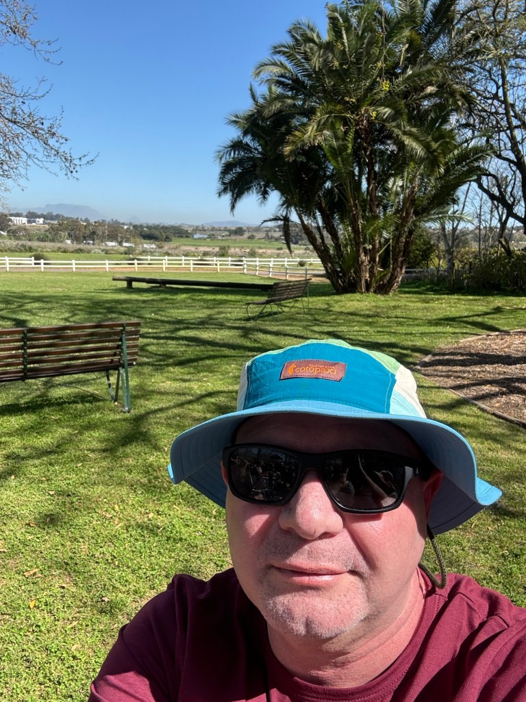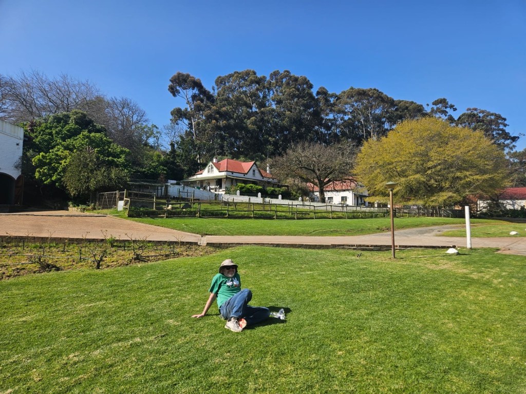 We then went to another vineyard for lunch (no wine for me) where we had a sausage on a roll with caramelised onion (the sausage was Kudu. We tried a chicken kebab with a potato salad and a coleslaw made of carrot and pineapple. To finish it off we had a traditional cheese and tomatoes sandwich cooked on the coals from the braai.