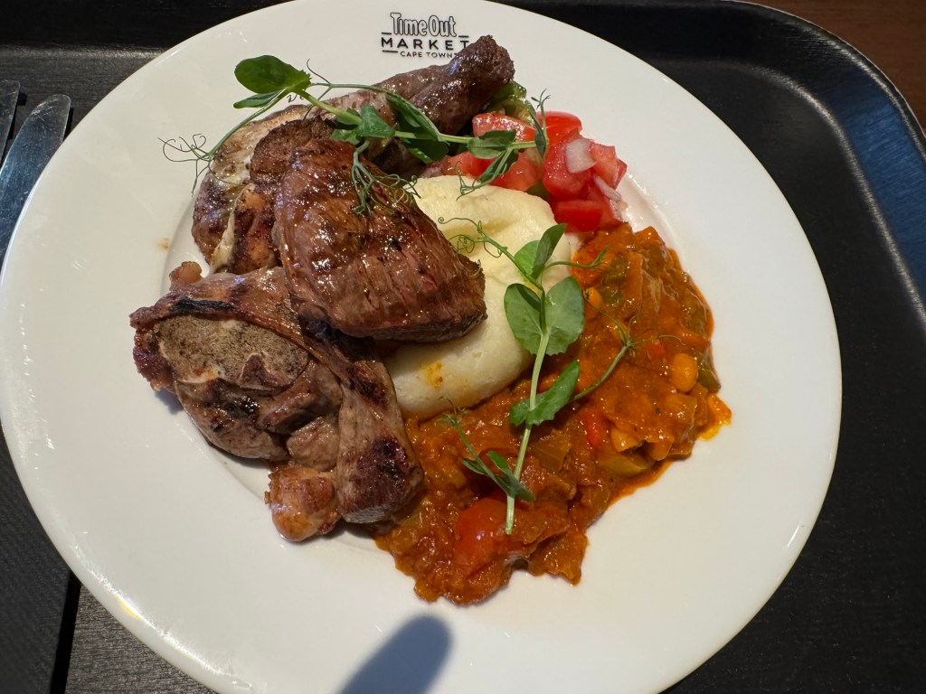 After we got back to the hotel we went down the Time Out market we found the other day to find that it closed at 6 (missed it by 18 minutes). Silver lining there is a food market next door which has lots of little kitchens providing locals opportunities to open a restaurant without the overhead of a full restaurant setting. I tried the Braai plate with steamed bread and Stu got a banana blossom bao. We had Malva Pudding and vanilla bean ice cream for dessert from one of the vendors in the market place – this was delicious and had a gingerbread taste to it. Hopefully Malva Pudding is available all over South Africa.