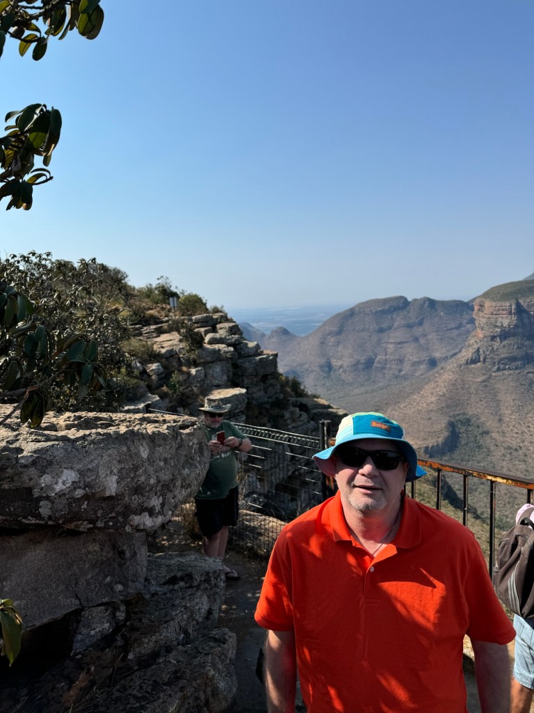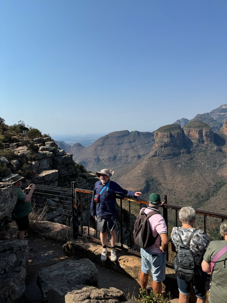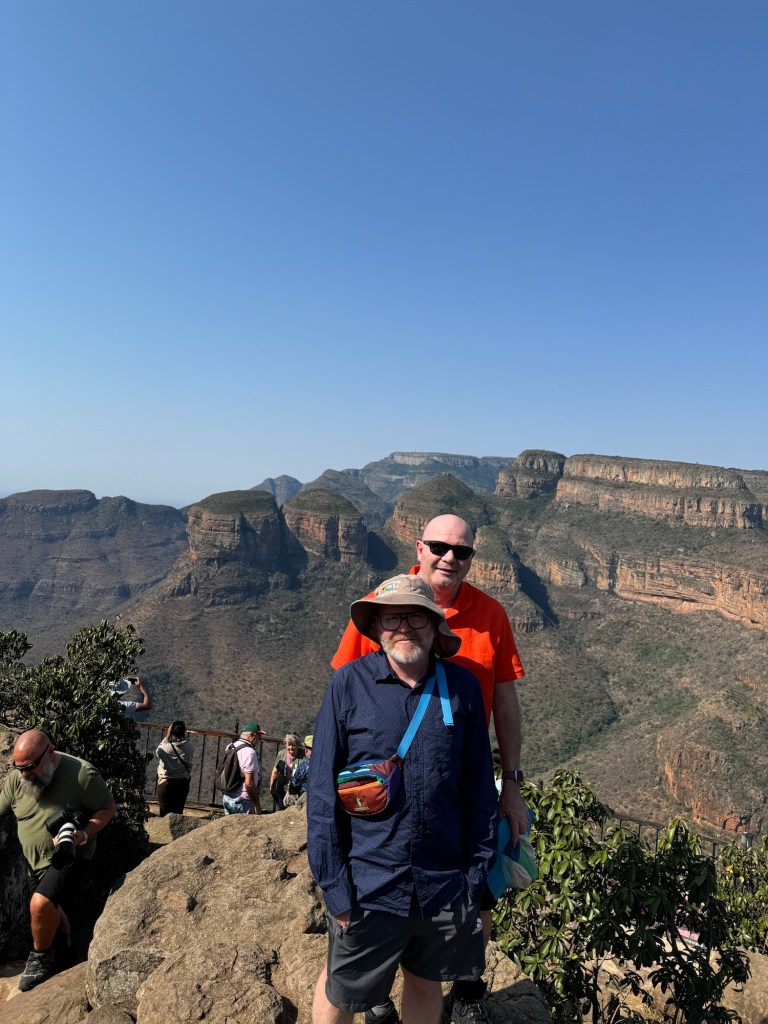 After lunch we visited two viewing stops on the way down to Hazy View. The first was at the top of Boyd’s River Canyon which is the third largest in the world and runs for 26km. The first stop had a view of the Three Rondavels. We were here for 25 minutes in which time Stu and I bought a few bits and pieces from some locals selling their wares. I would like to say I got a good bargain but we probably got an OK bargain.