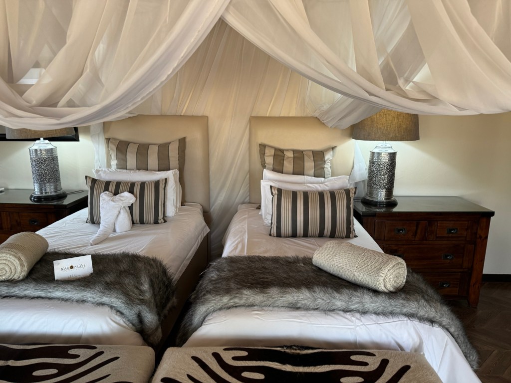 Becks is one of three resorts and is the top lodge in the reserve. We had been upgraded as the other lodge was full (this was going to be glamping). The reserve is fenced and animal here have been acquired or are here for breeding purposes (eg Cheetahs).