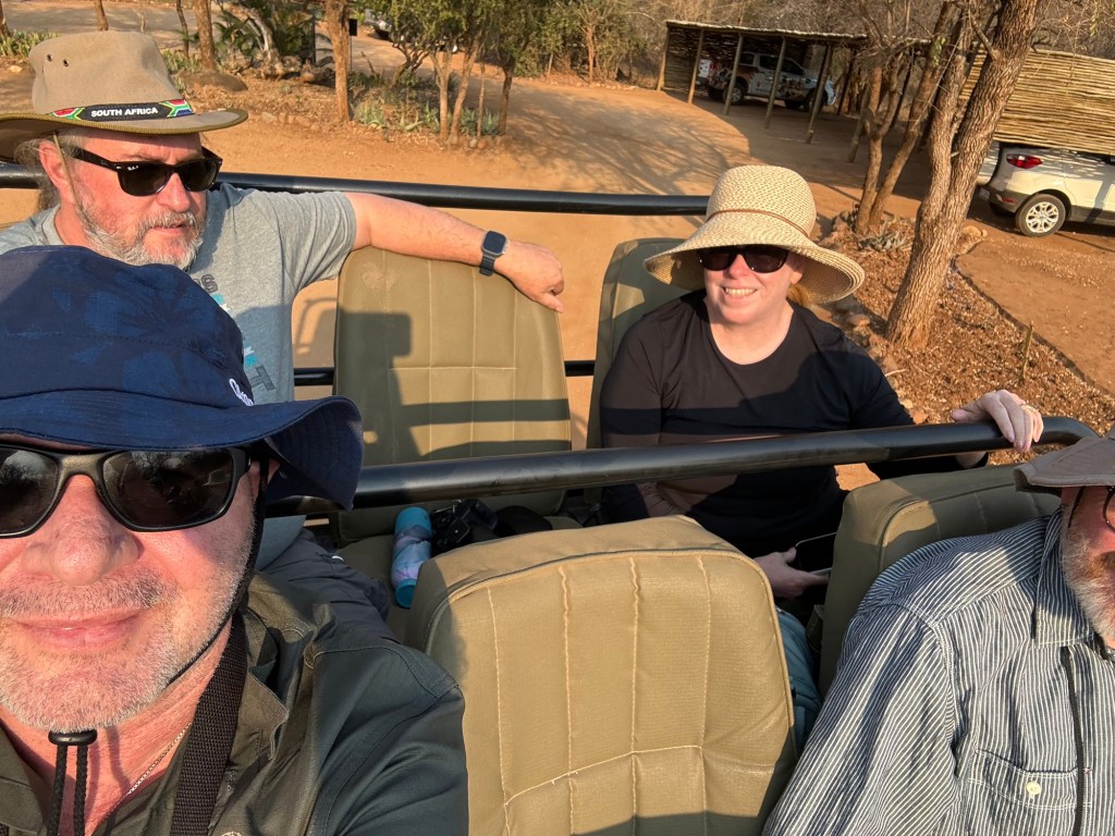After the talk we got into the open jeeps (no roof on these) for an afternoon game drive. We have 4 game drives while we are here, afternoon today, morning and afternoon tomorrow and a morning on Tuesday before we head back to Johannesburg.