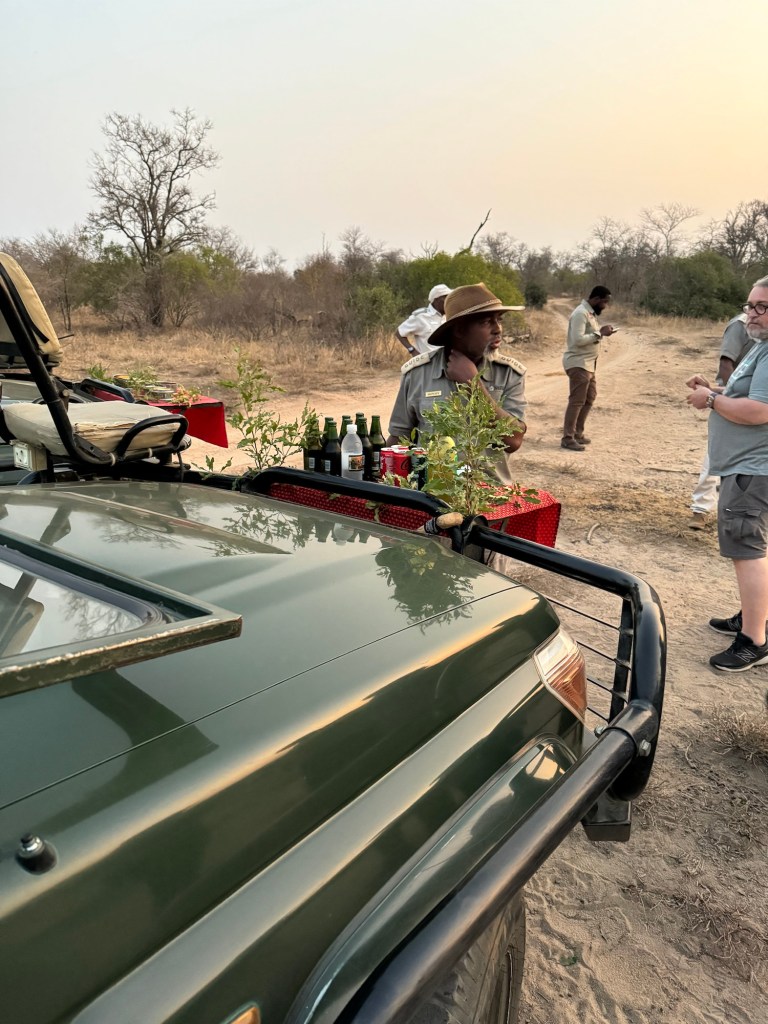 After we’s spent some time with the Cheetahs we had drinks on the savannah as the sun set. On the way back they spotted some leopard cubs in the undergrowth which I couldn’t quite capture.