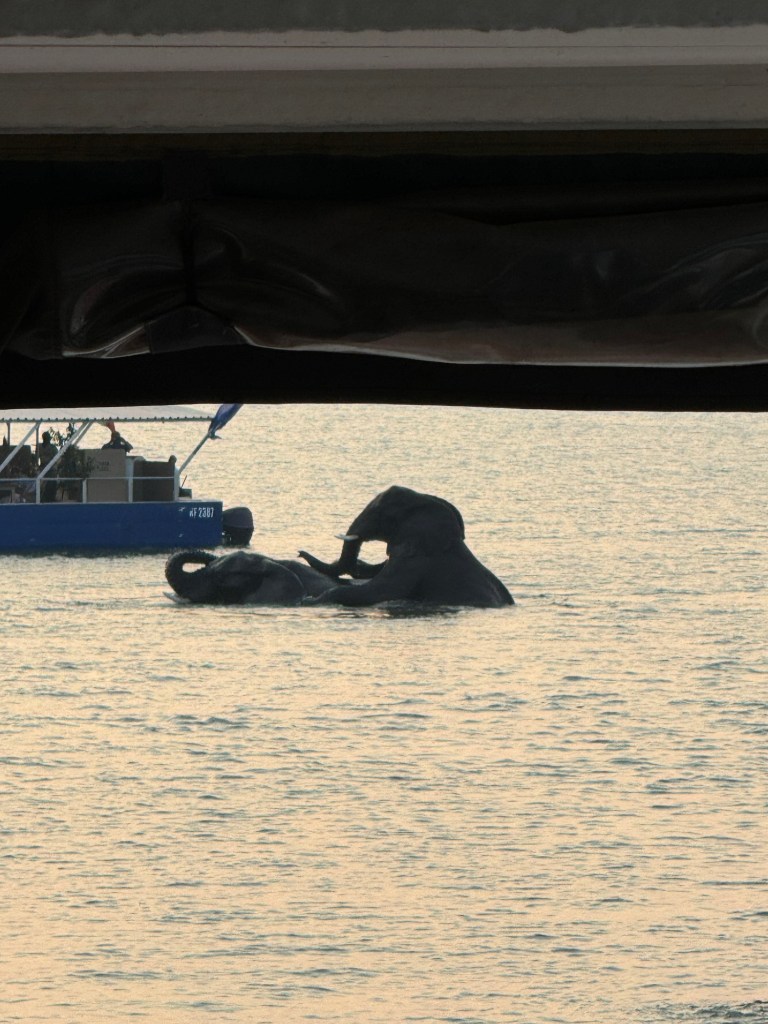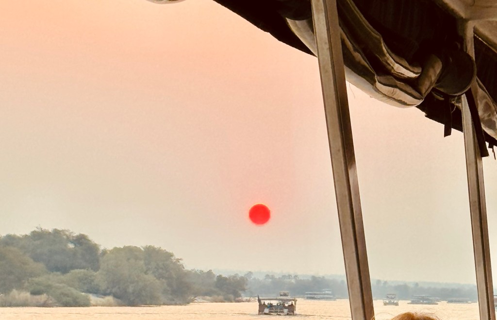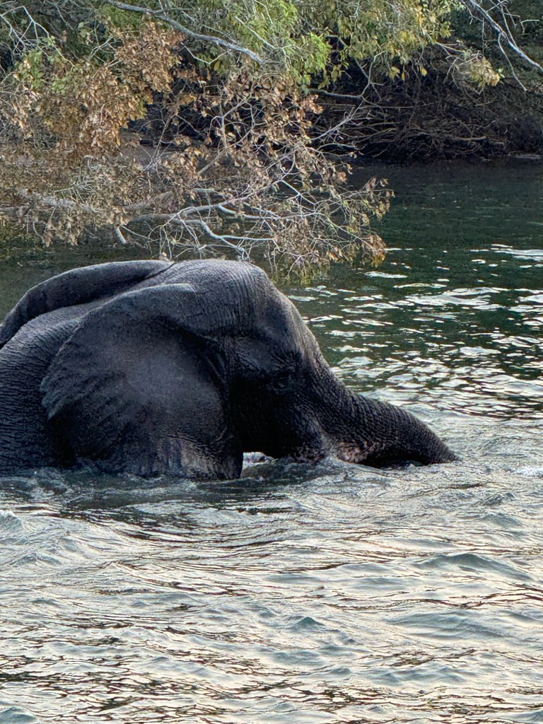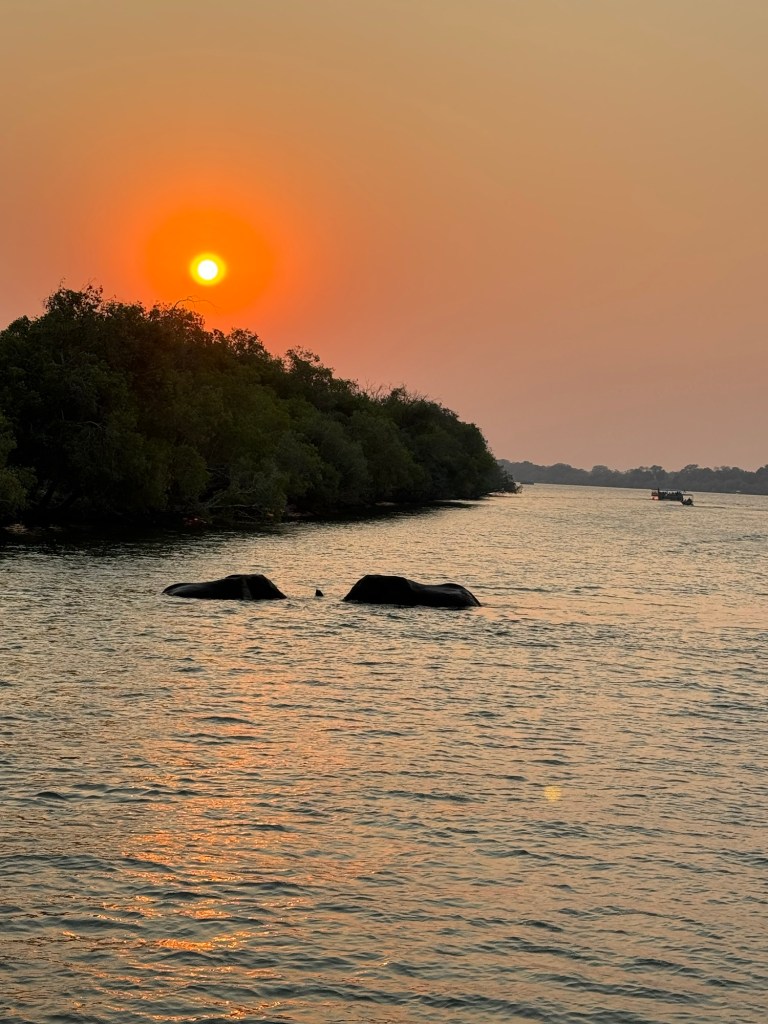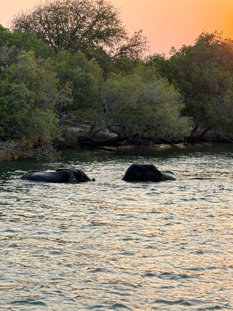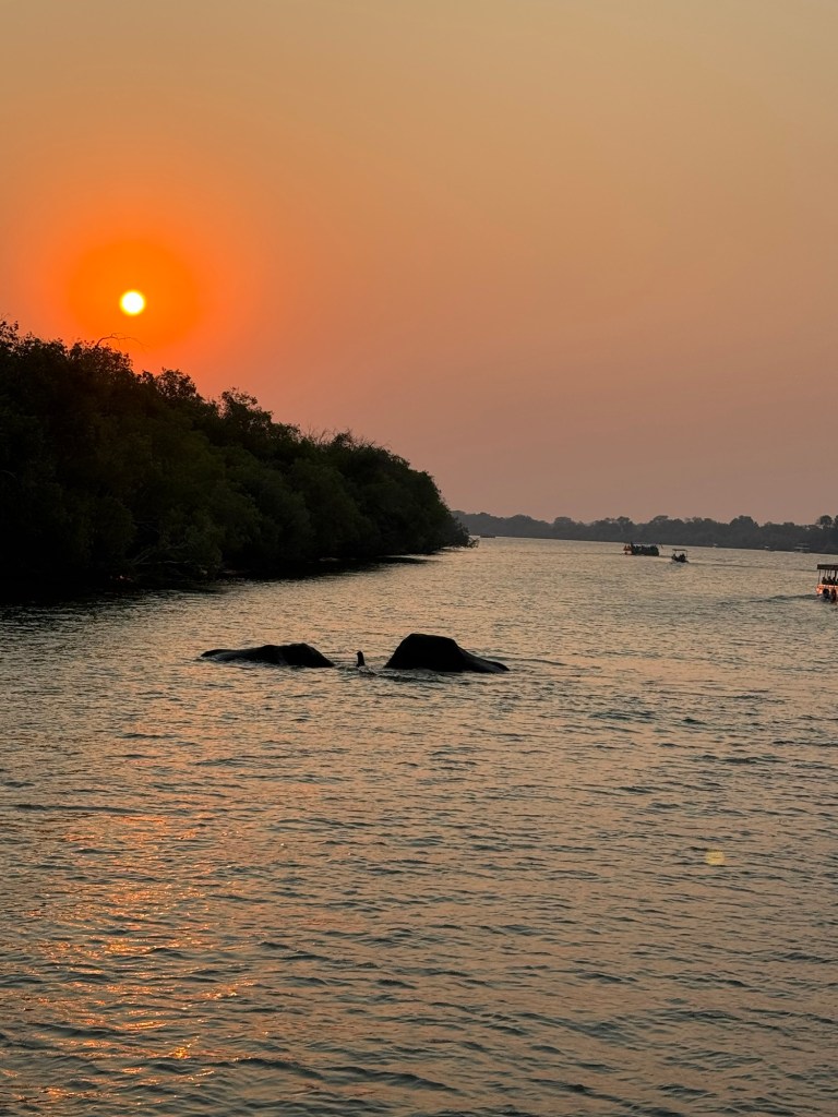After we had met the two groups we were transferred to our boat on the Zambezi River to have a sunset cruise. The cruise was very peaceful and serene. We saw lots of Hippos as well as three elephants (1 male and 2 females), the male was very amorous and was having his way with one of the females in the river. The water makes the male lighter which means the female is more likely to tolerate his advances.