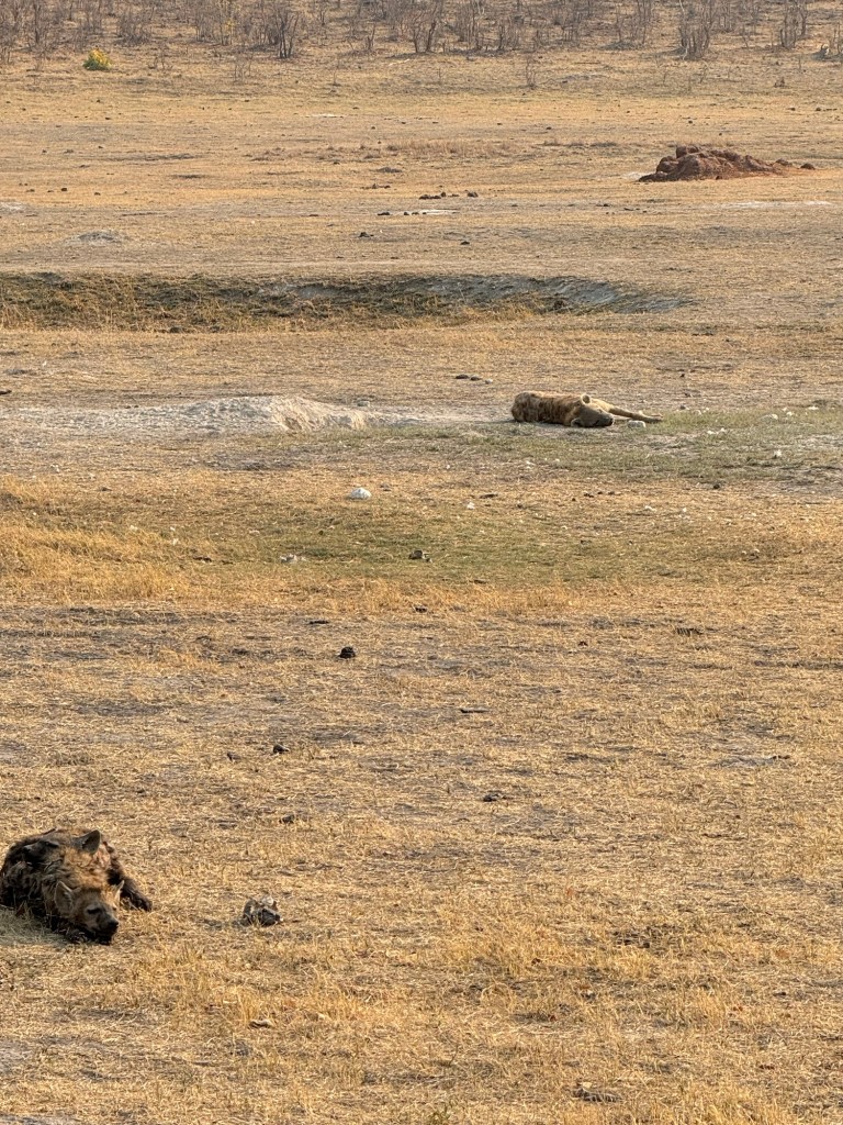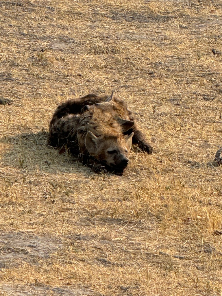Hyena’s live in dens and normally once the sun is up they go back to it and this is even more true when they have cubs. These dens are underground. We saw a mother hyena and her cubs just lying there sleeping in the sun without a care in the world.